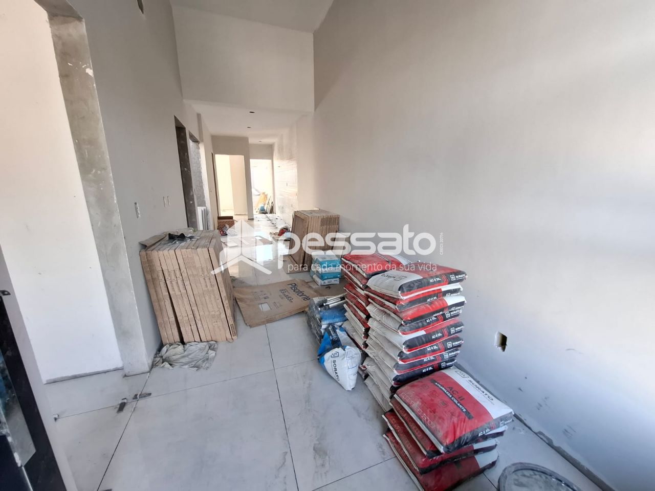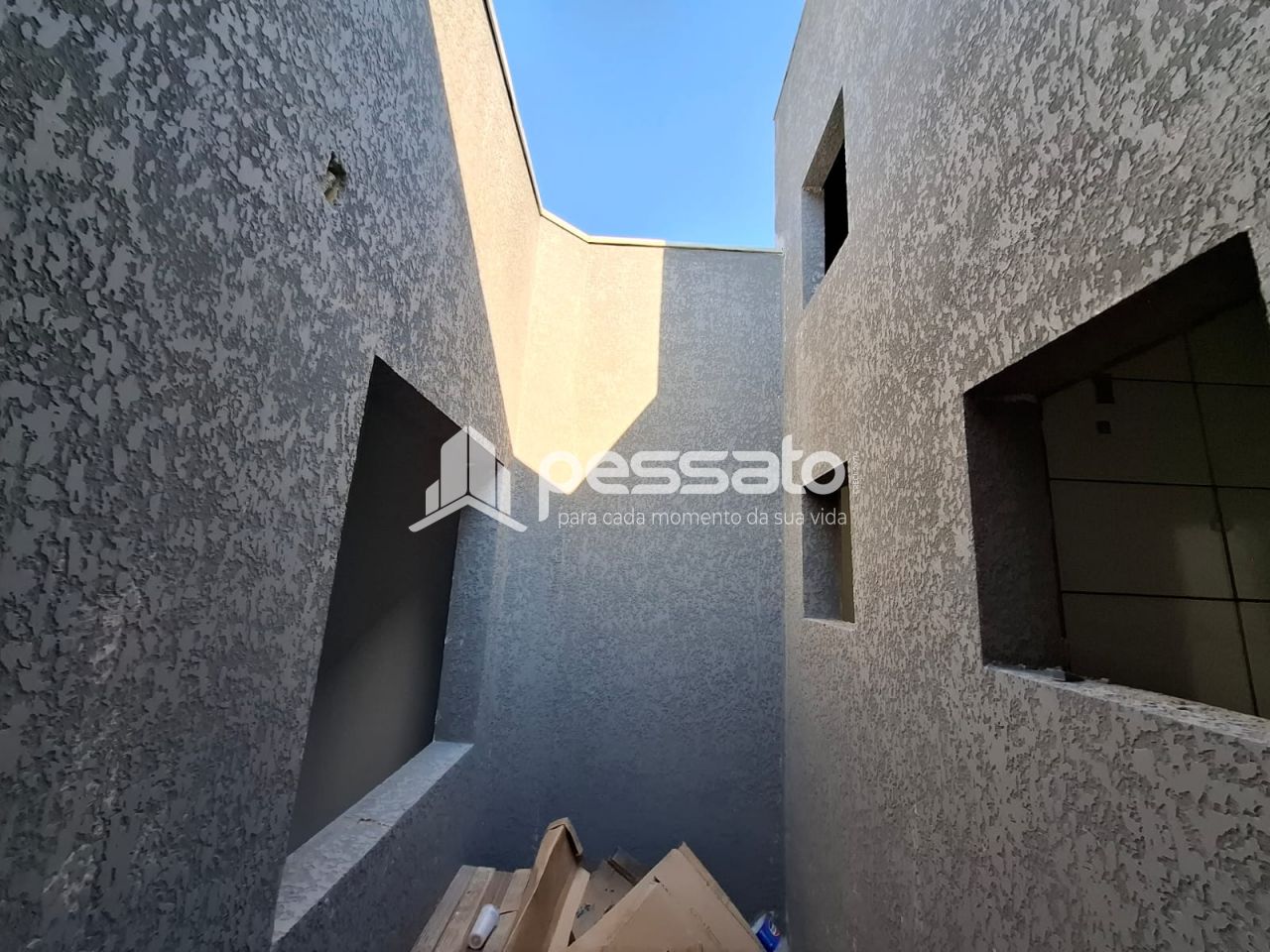 O imóvel conta com 03 dormitórios, sendo 01 suíte, sala de estar e jantar, área de serviços, cozinha, banheiro social e vaga para 02 carros descoberta.