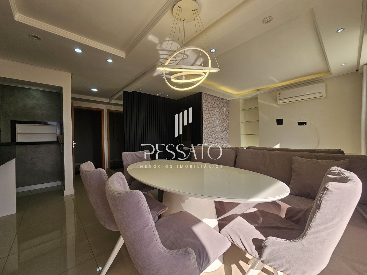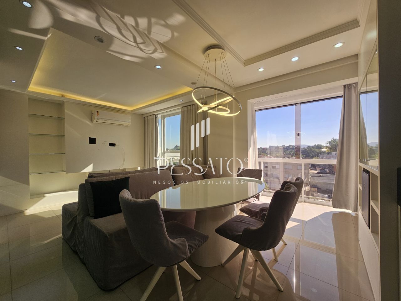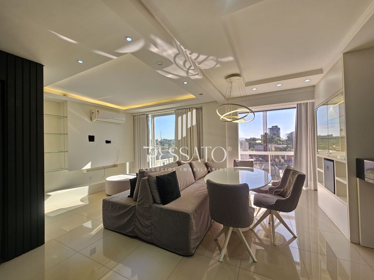 Imobiliária Pessato aluga excelente apartamento mobiliado no Condomínio Grann Palazzio no Centro de Gravataí/RS.