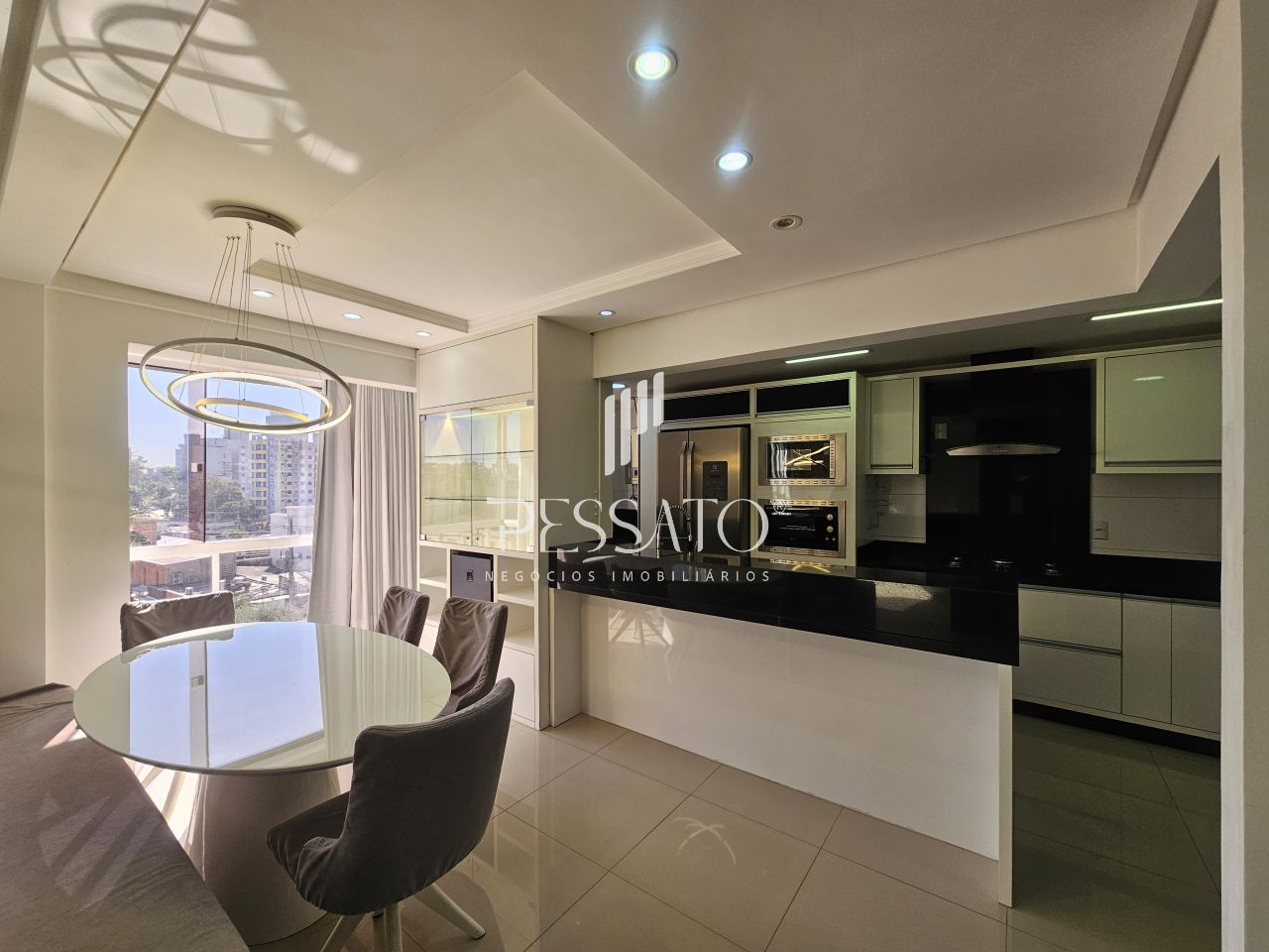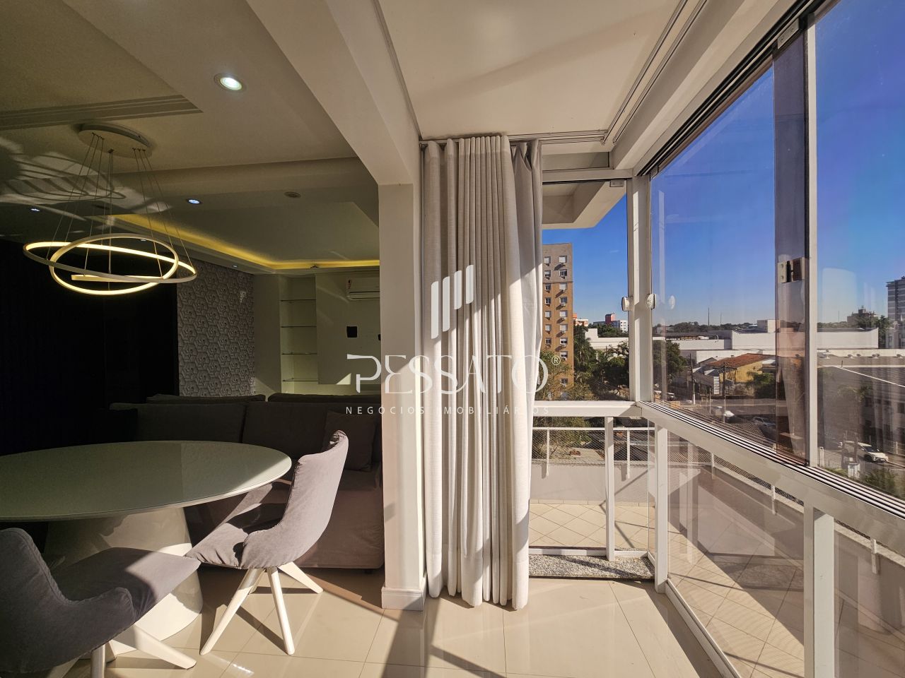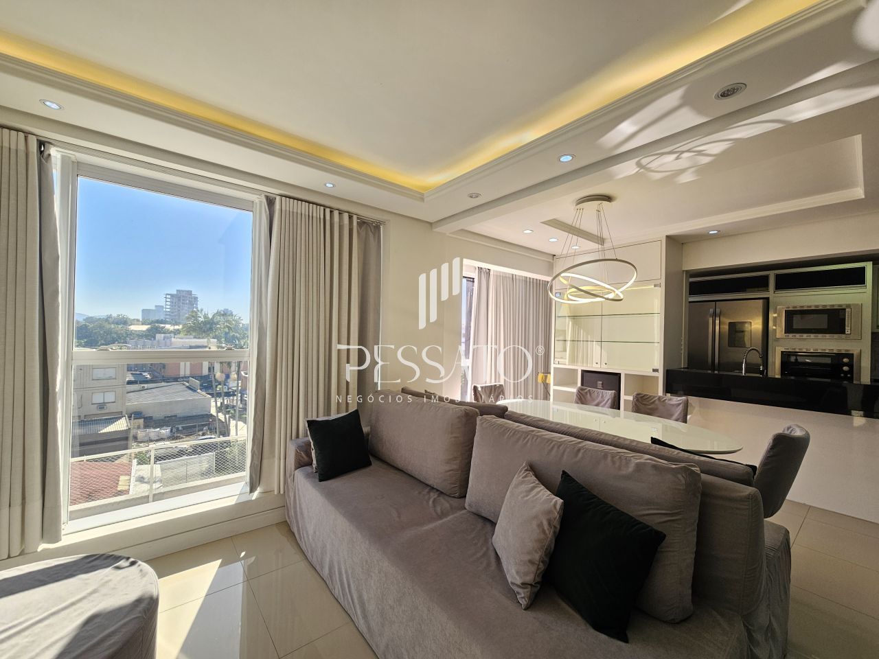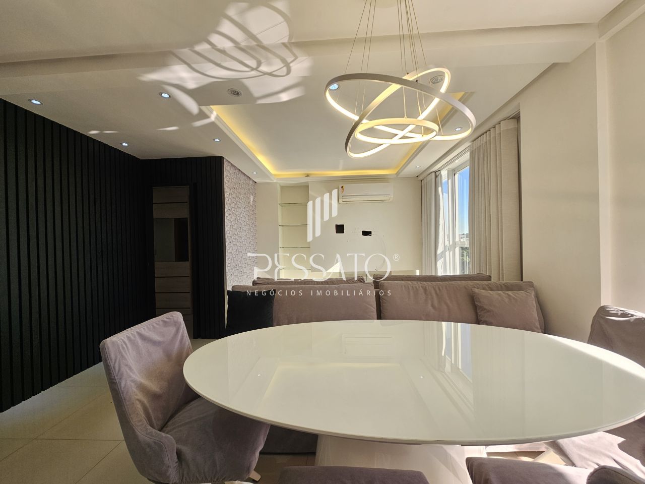Imobiliária Pessato aluga excelente apartamento mobiliado no Condomínio Grann Palazzio no Centro de Gravataí/RS.