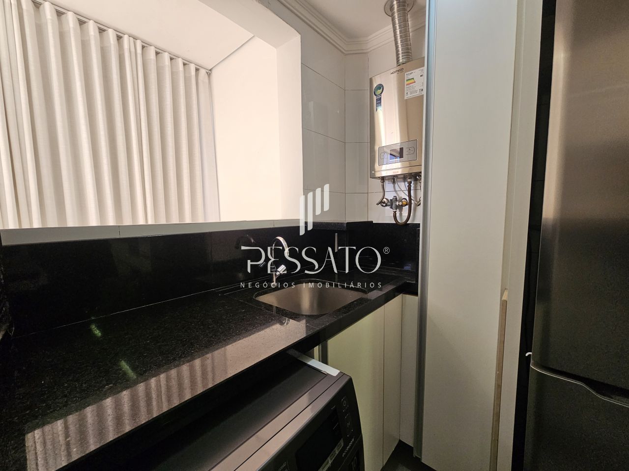 O imóvel conta com 02 dormitórios, sendo 01 suíte com closet, sala de estar e jantar, área de serviços, cozinha com móveis planejados, 02 banheiros e vaga para 02 carros coberta.