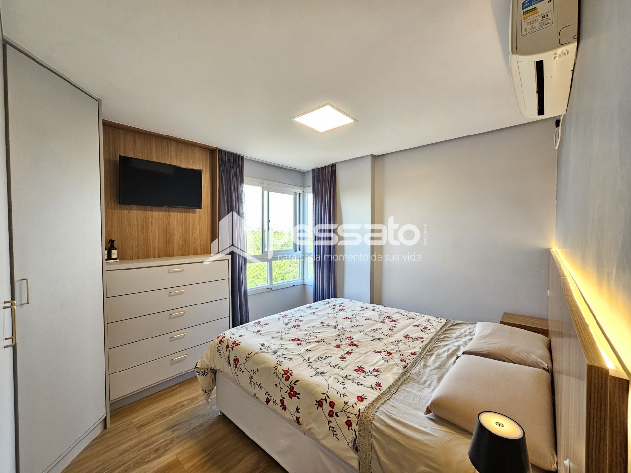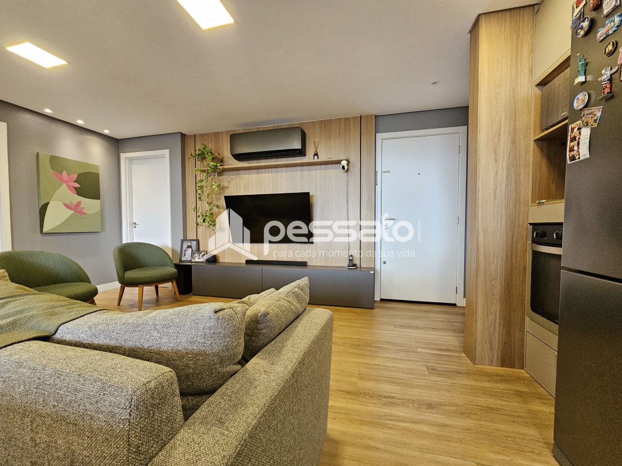 O imóvel conta com 03 dormitórios, sendo 01 suíte, sala de estar, cozinha planejada, sacada fechada, 02 banheiros e vaga para 02 carros coberta.