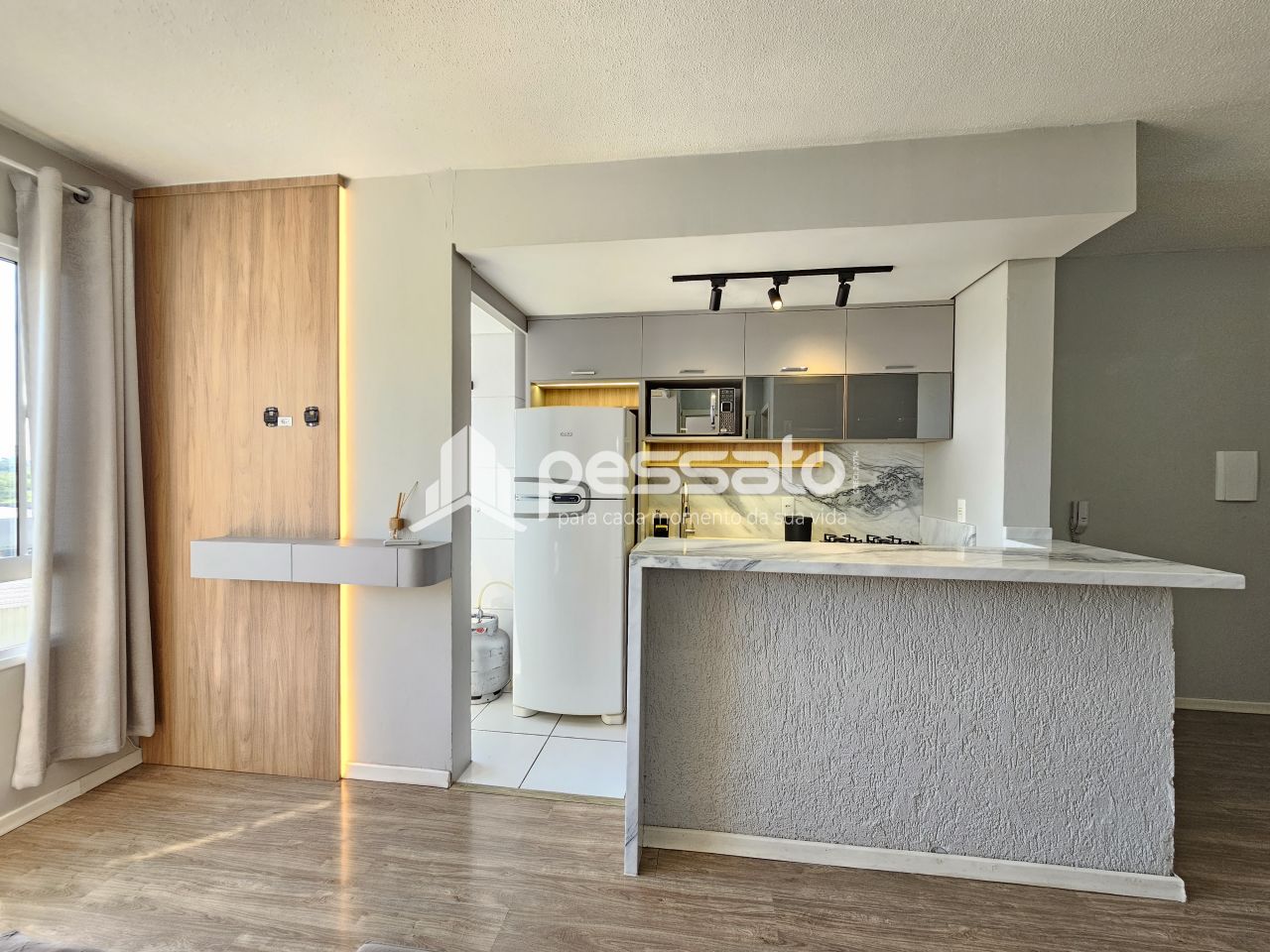 O imóvel conta com 02 dormitórios, sala de estar, cozinha planejada, 01 banheiro e vaga para 01 carro descoberta.