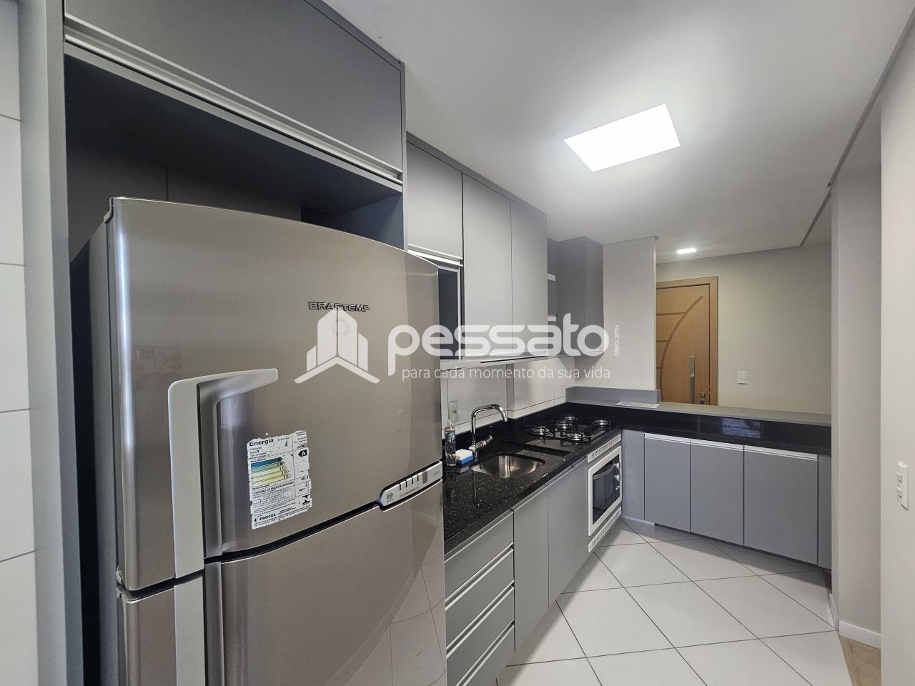 O imóvel conta com 02 dormitórios, sendo 01 suíte, sala de estar, cozinha planejada, sacada com churrasqueira, 02 banheiros e vaga para 01 carro coberta.