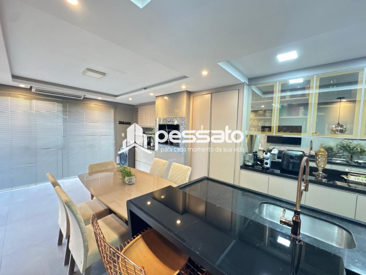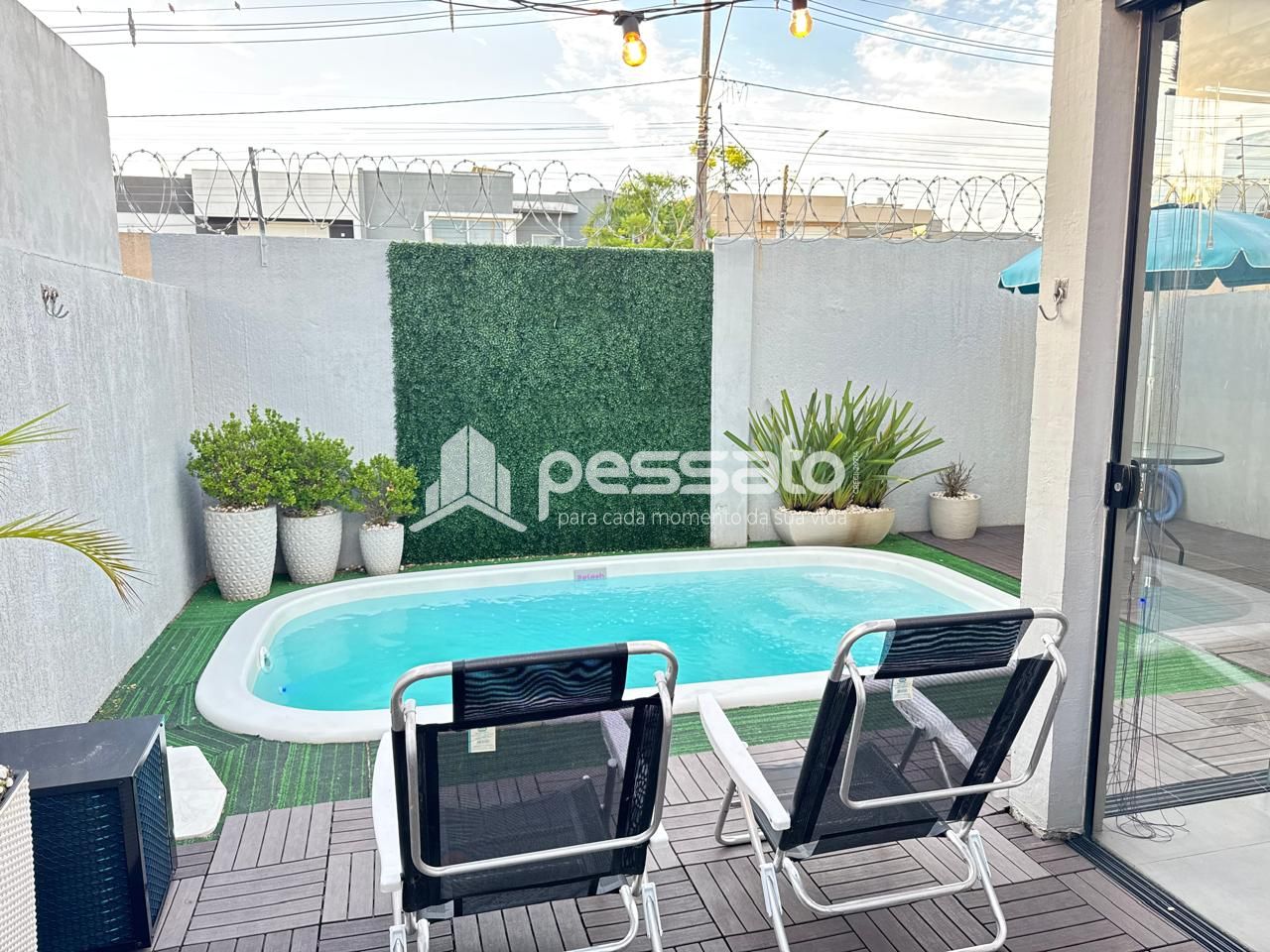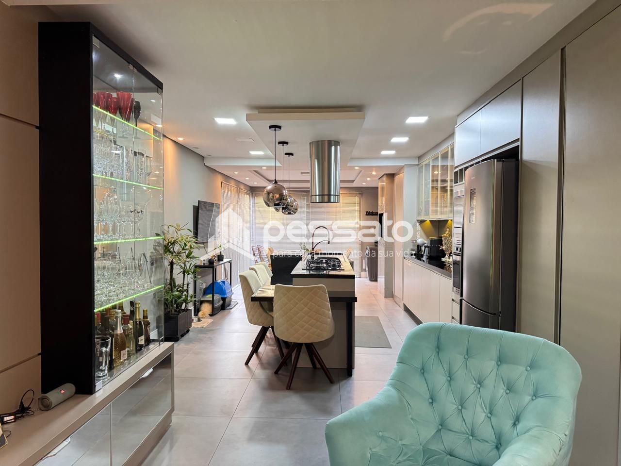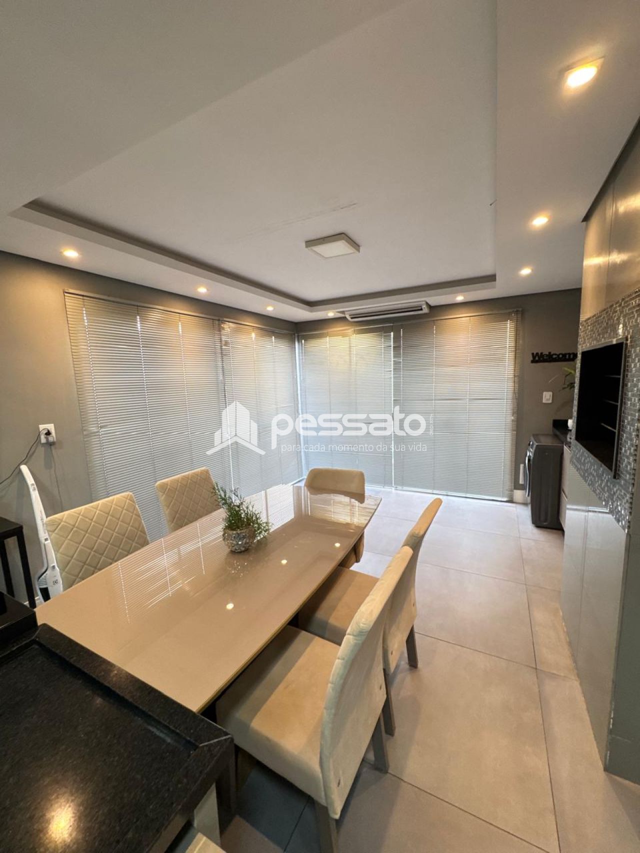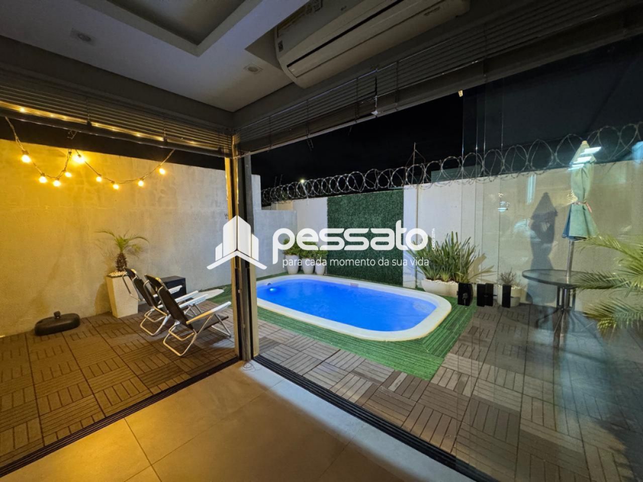 O imóvel conta com 02 dormitórios, sendo 01 suíte, sala de estar, cozinha e sala de jantar integradas, área de serviço, cozinha planejada, churrasqueira, piscina, 02 banheiros e vaga para 02 carros descoberta.