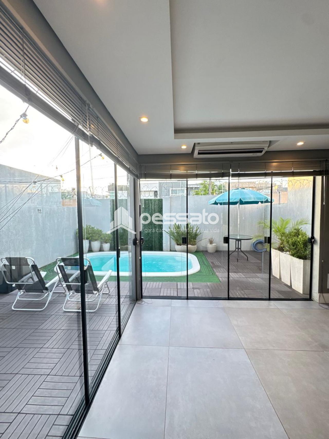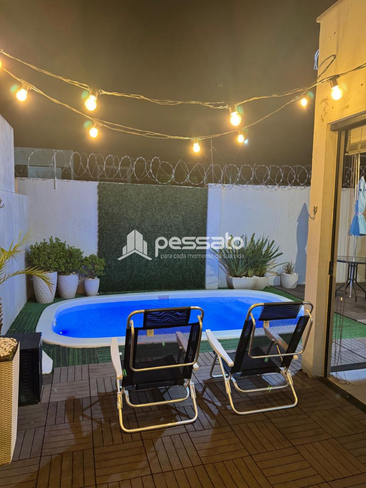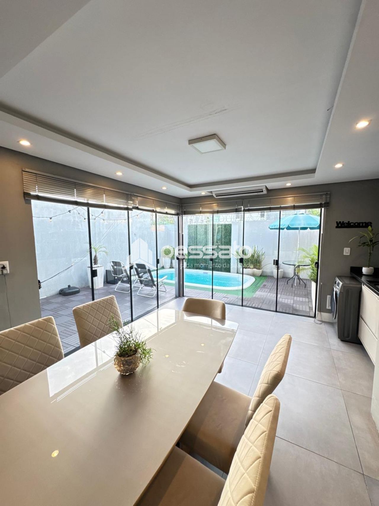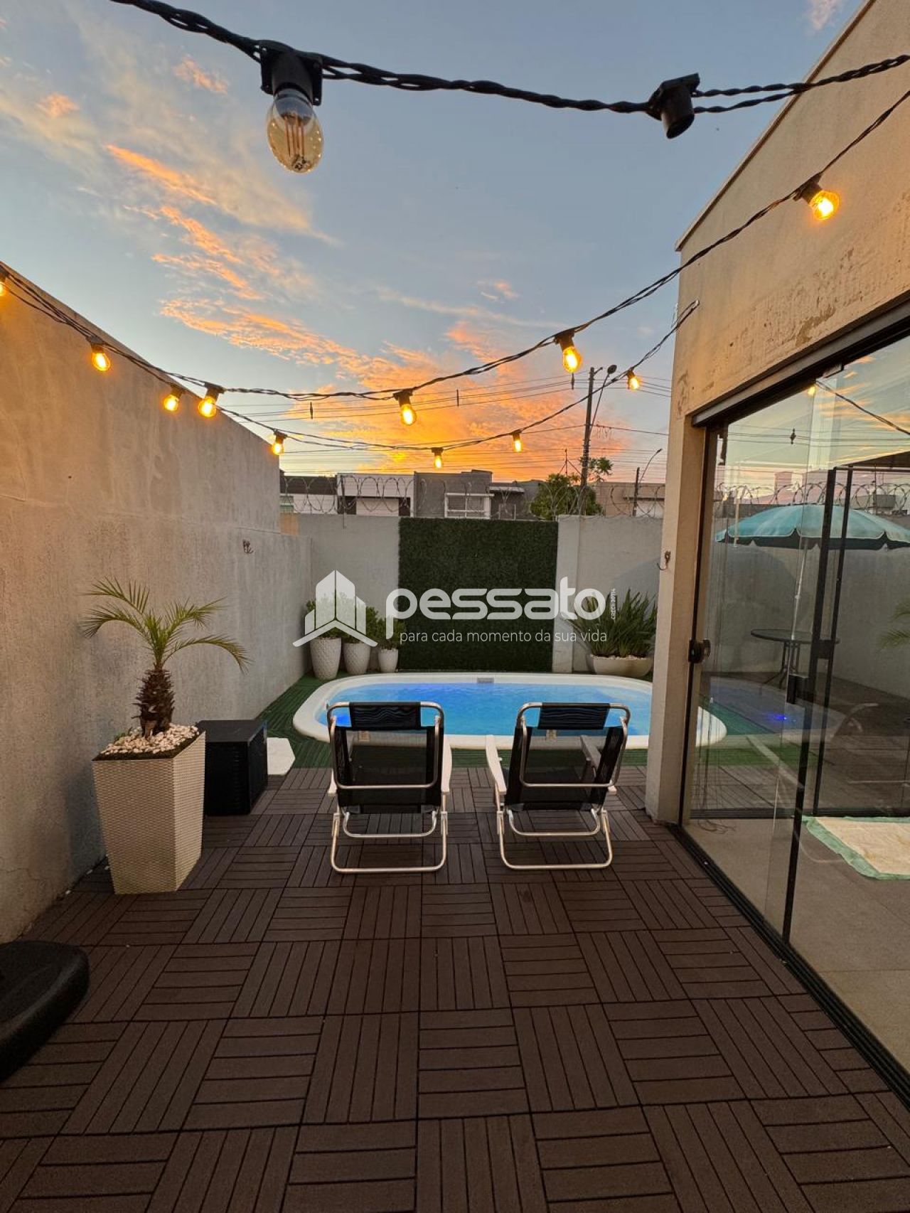 O imóvel conta com 02 dormitórios, sendo 01 suíte, sala de estar, cozinha e sala de jantar integradas, área de serviço, cozinha planejada, churrasqueira, piscina, 02 banheiros e vaga para 02 carros descoberta.
