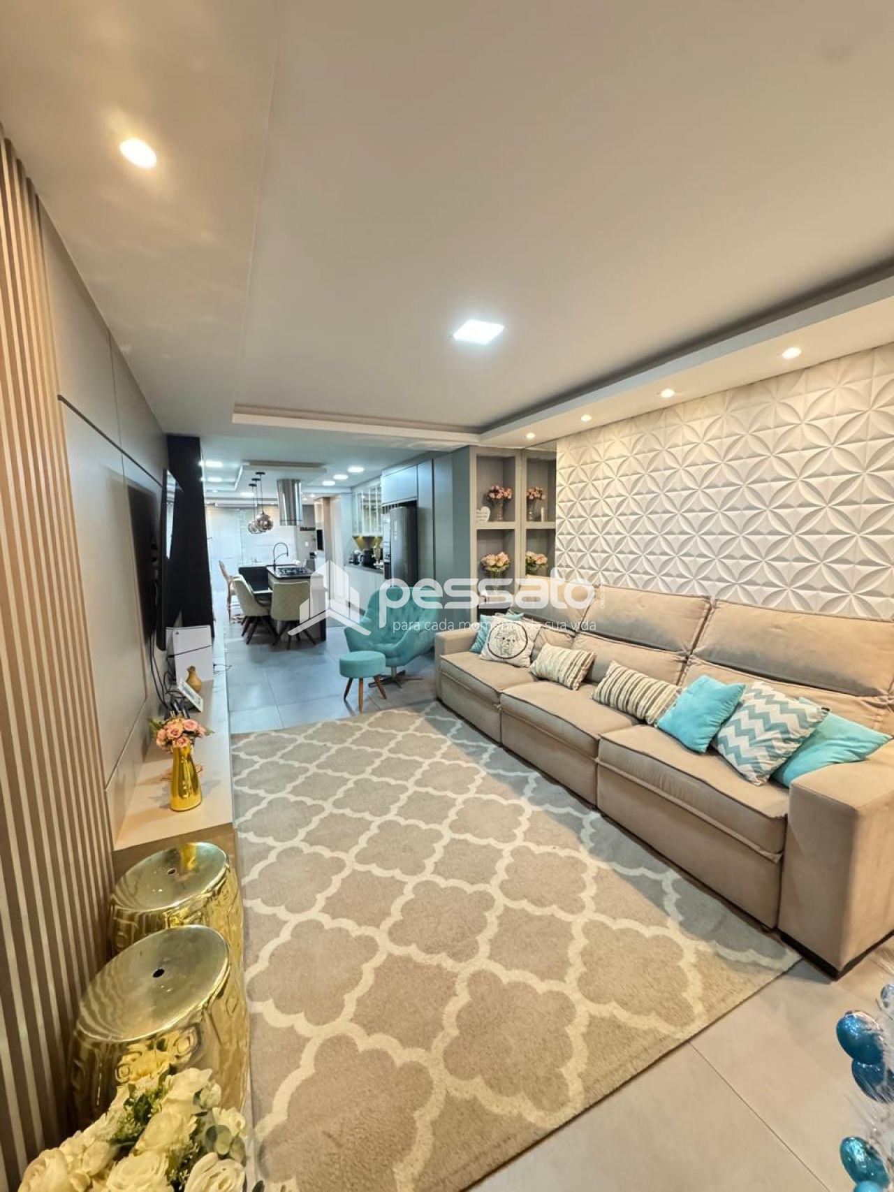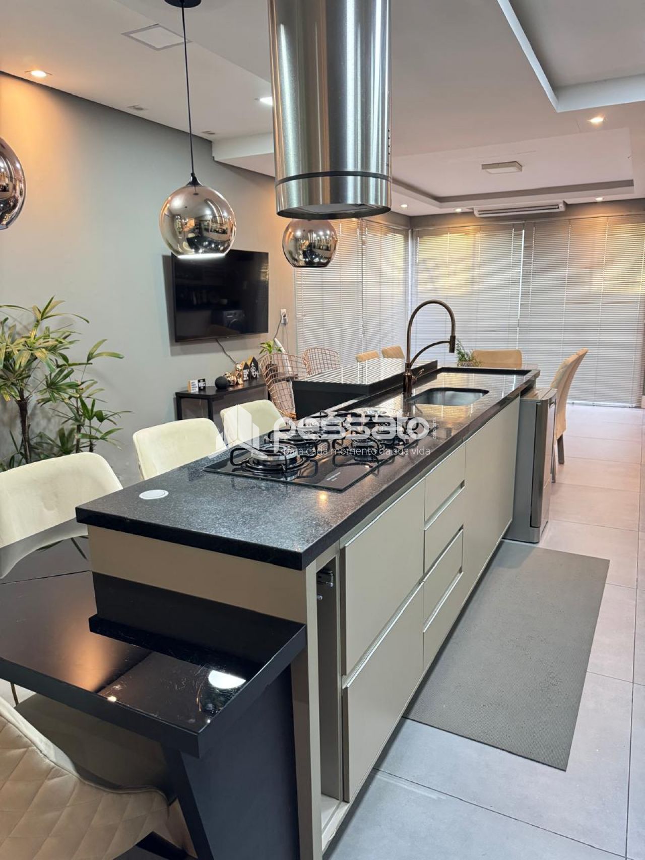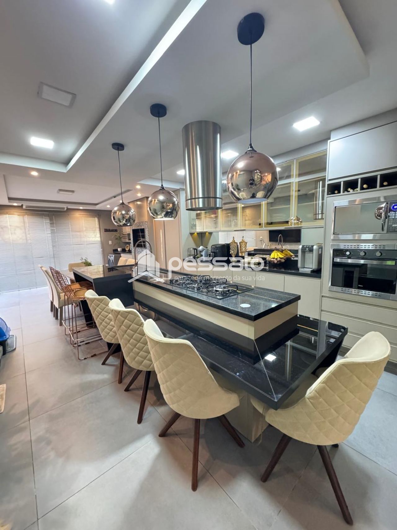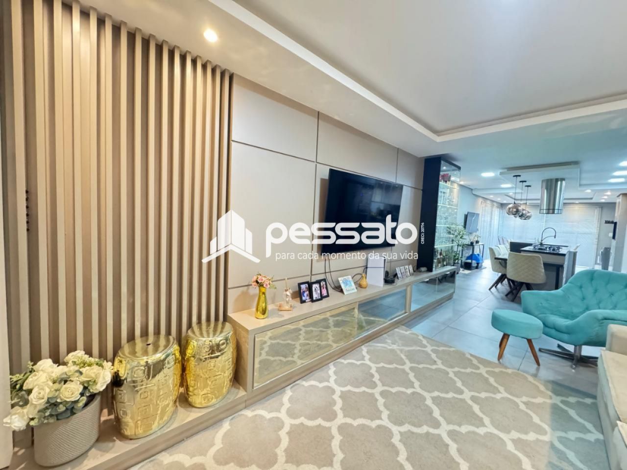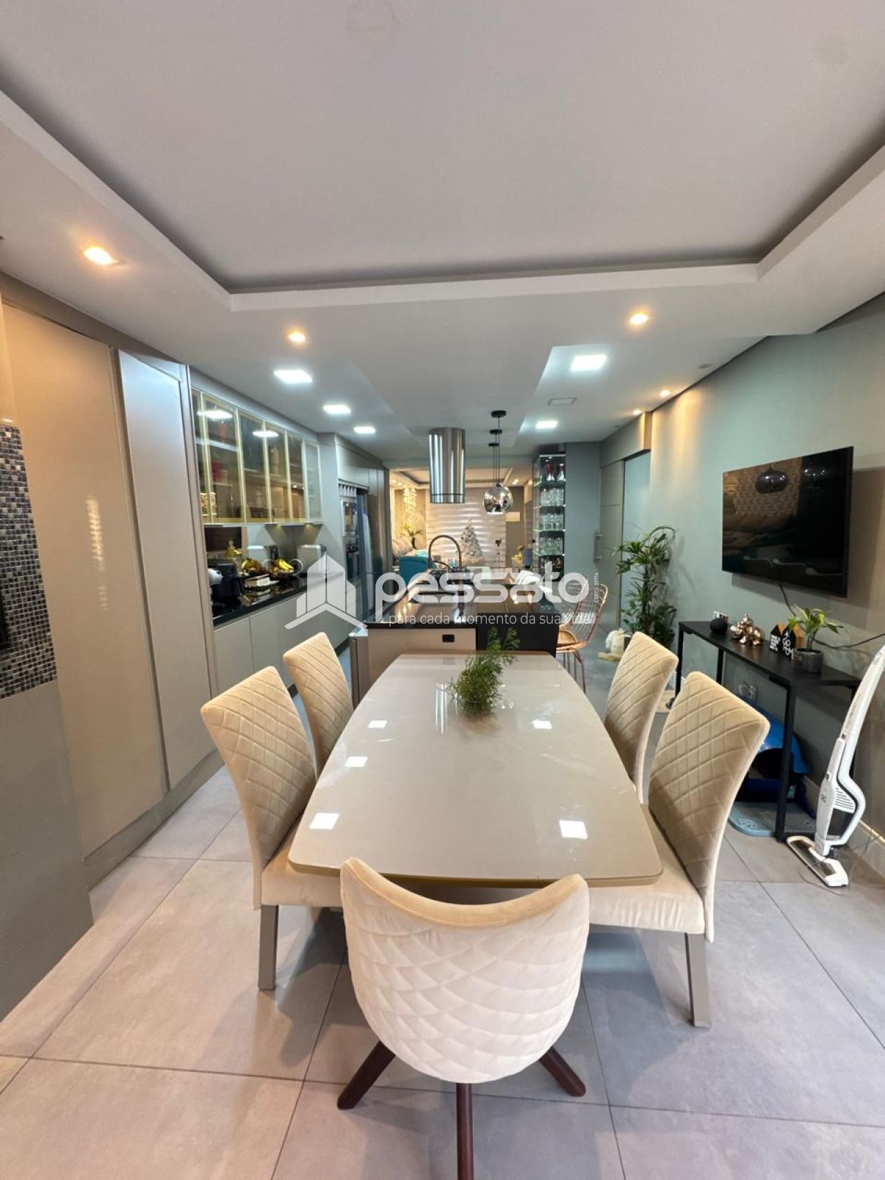 O imóvel conta com 02 dormitórios, sendo 01 suíte, sala de estar, cozinha e sala de jantar integradas, área de serviço, cozinha planejada, churrasqueira, piscina, 02 banheiros e vaga para 02 carros descoberta.
