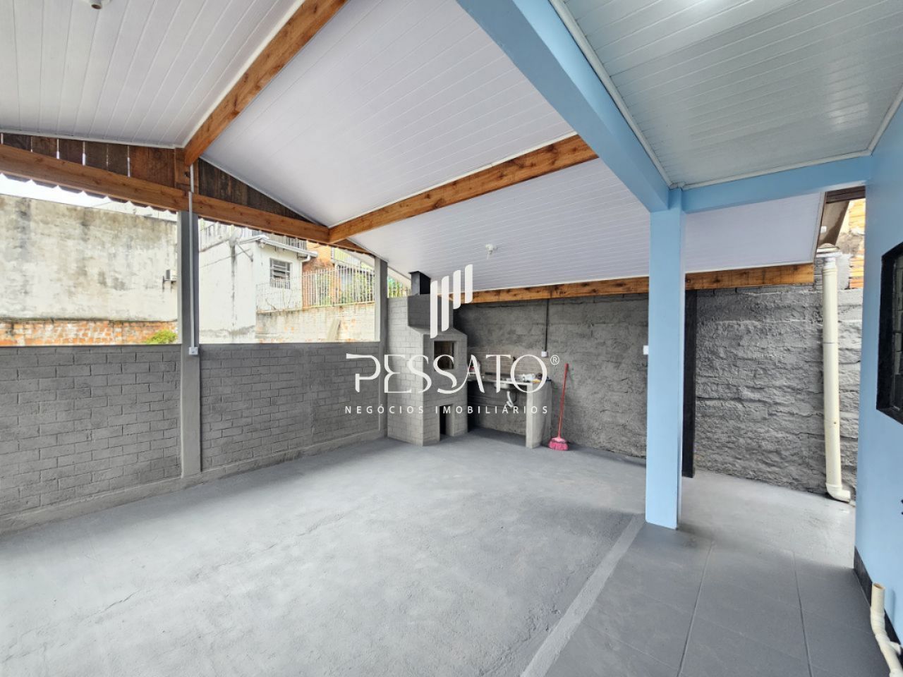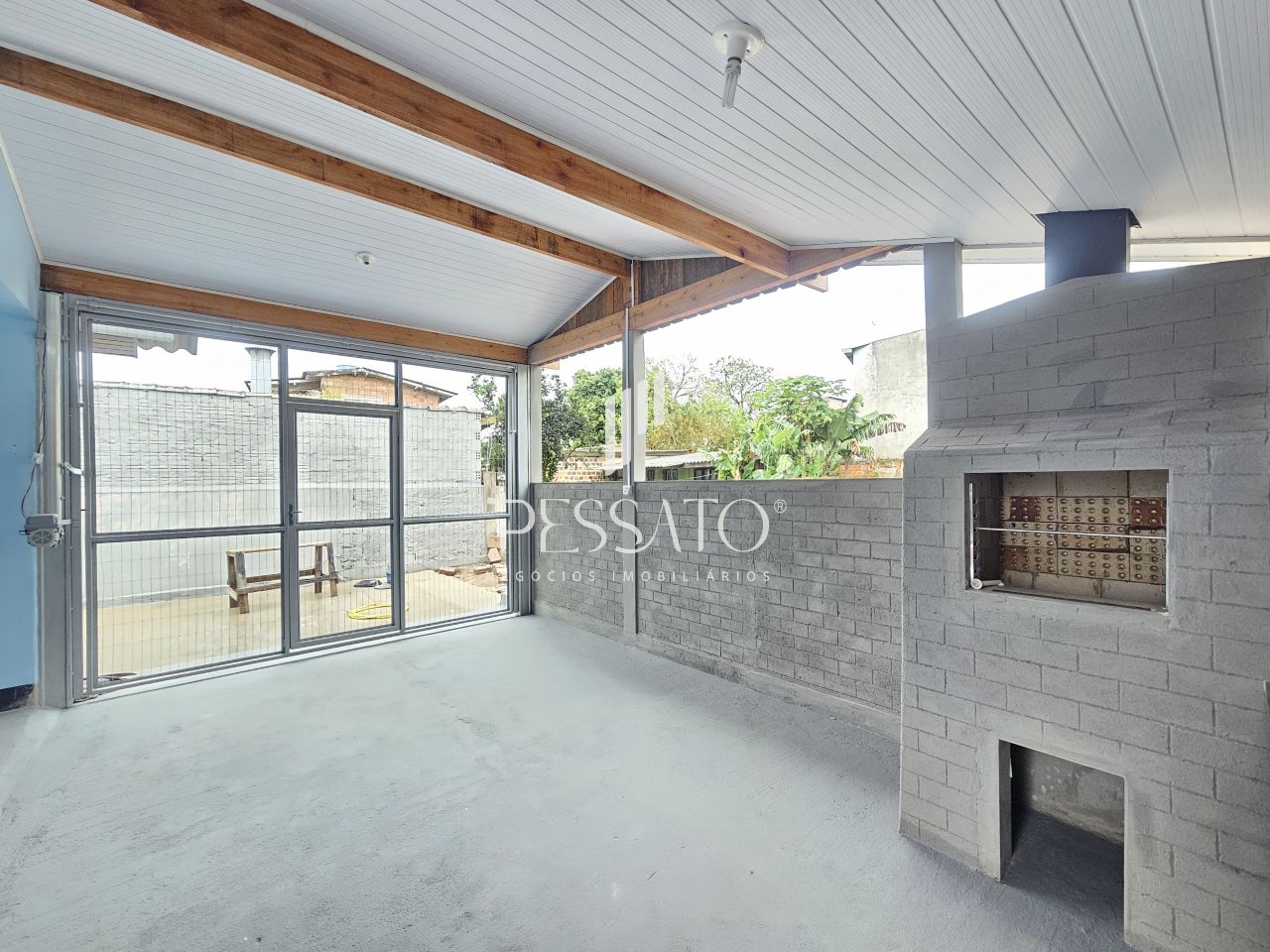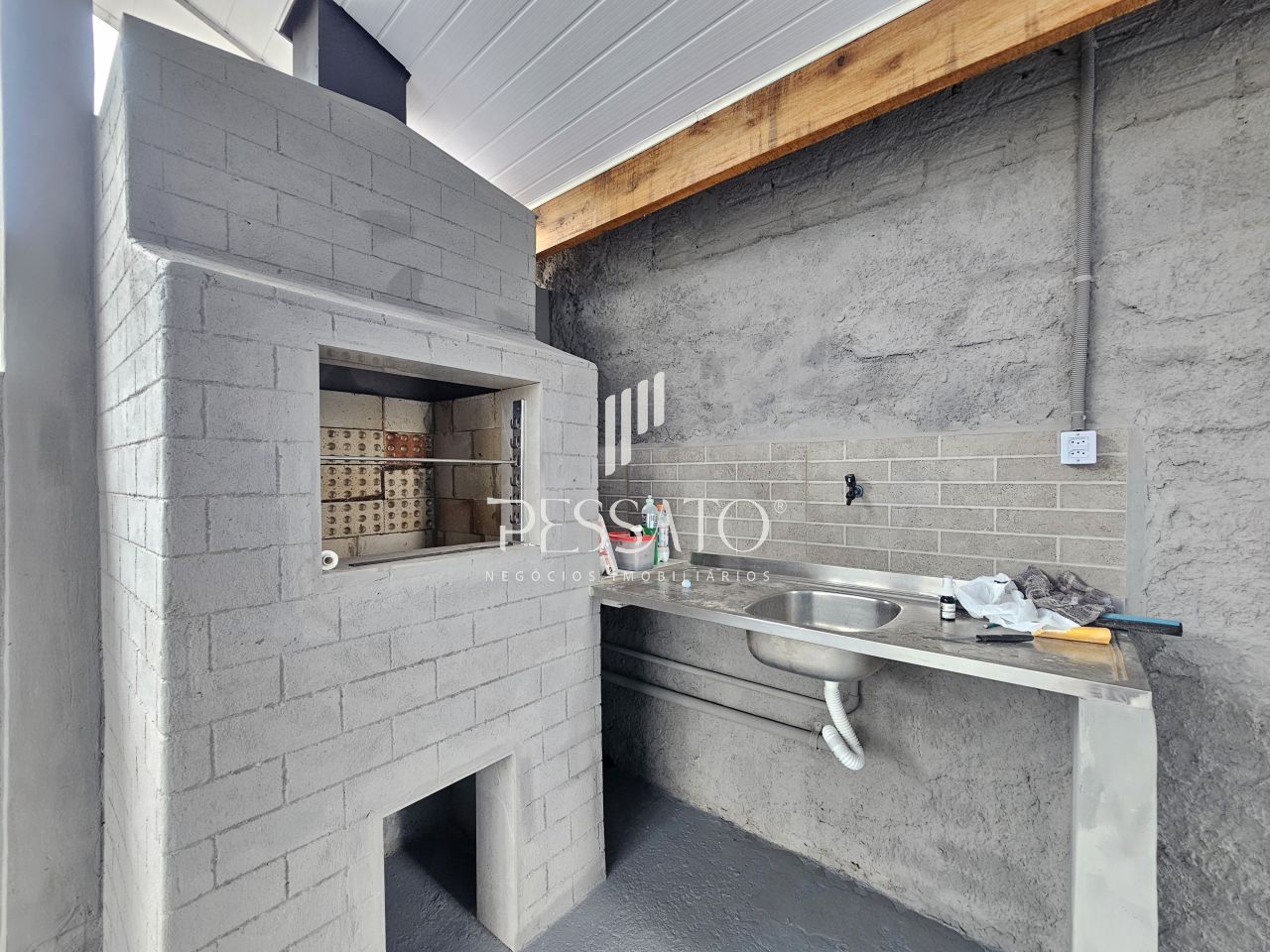 O imóvel conta com 02 dormitórios, sala de estar, área de serviço, cozinha, churrasqueira, 01 banheiro e vaga para 04 carros, sendo 03 vagas descoberta e 01 vaga coberta.
