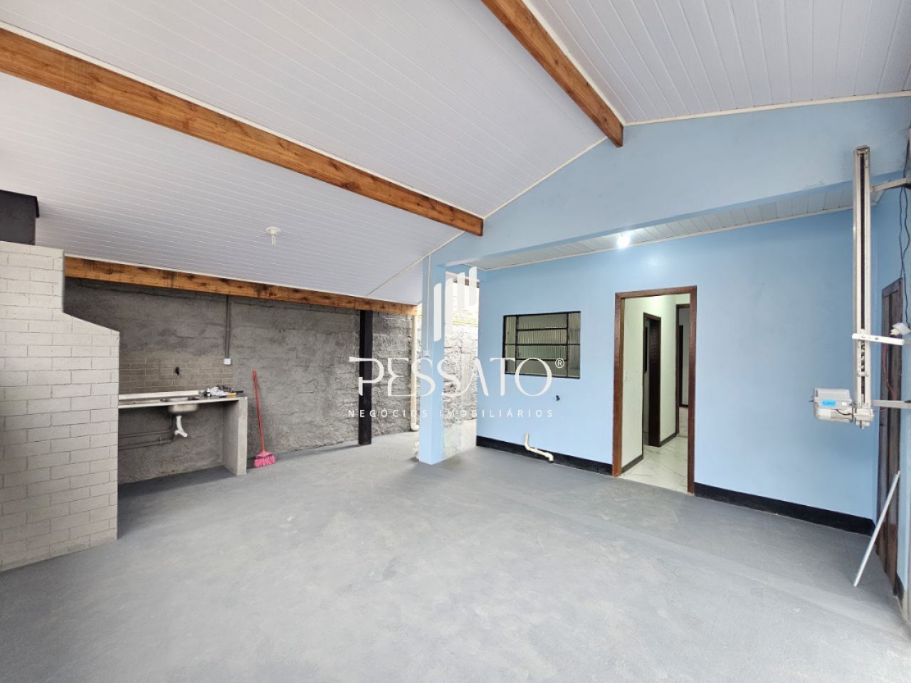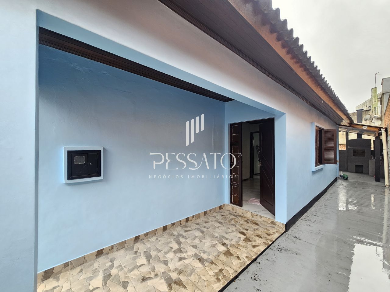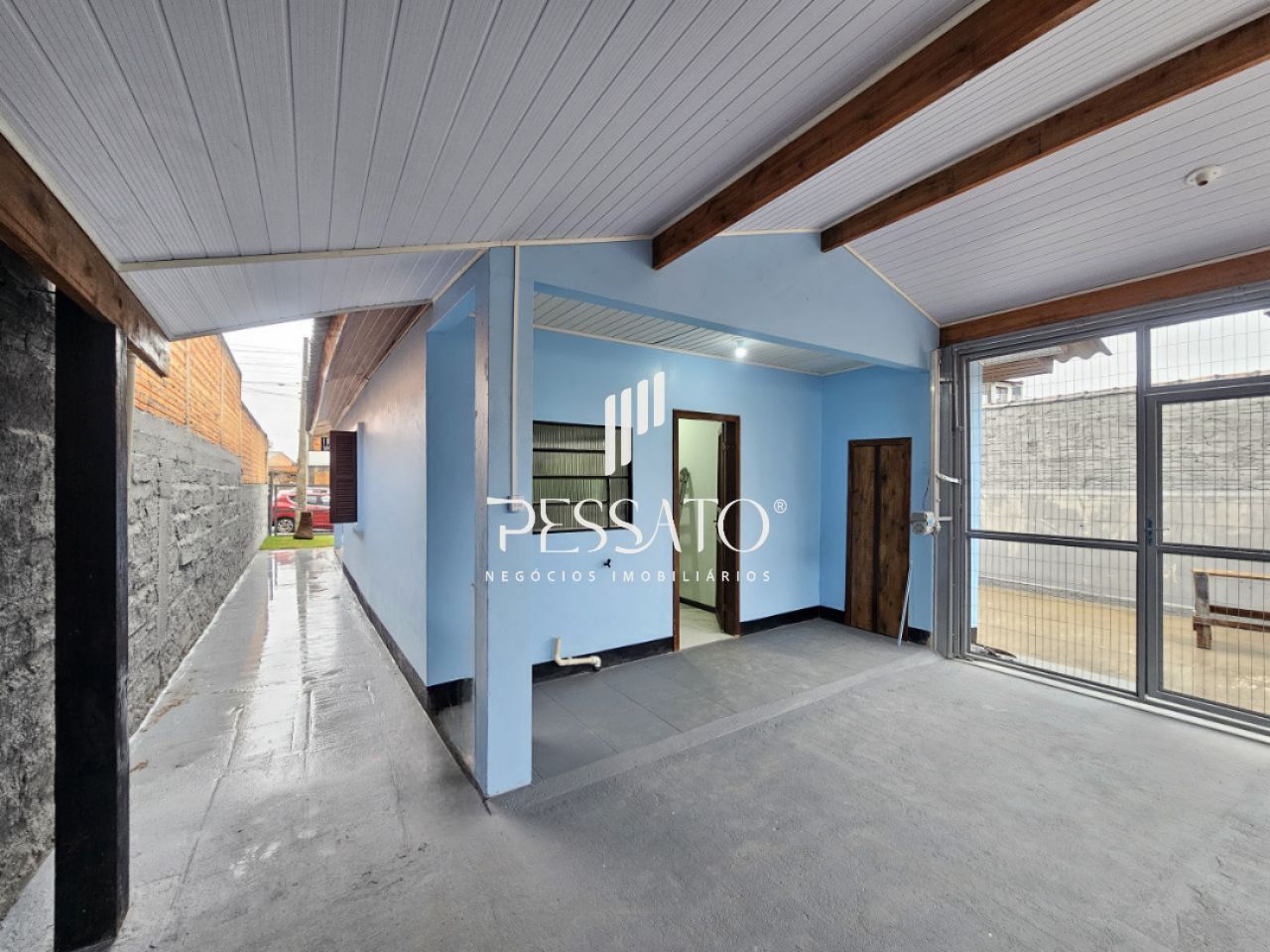 O imóvel conta com 02 dormitórios, sala de estar, área de serviço, cozinha, churrasqueira, 01 banheiro e vaga para 04 carros, sendo 03 vagas descoberta e 01 vaga coberta.
