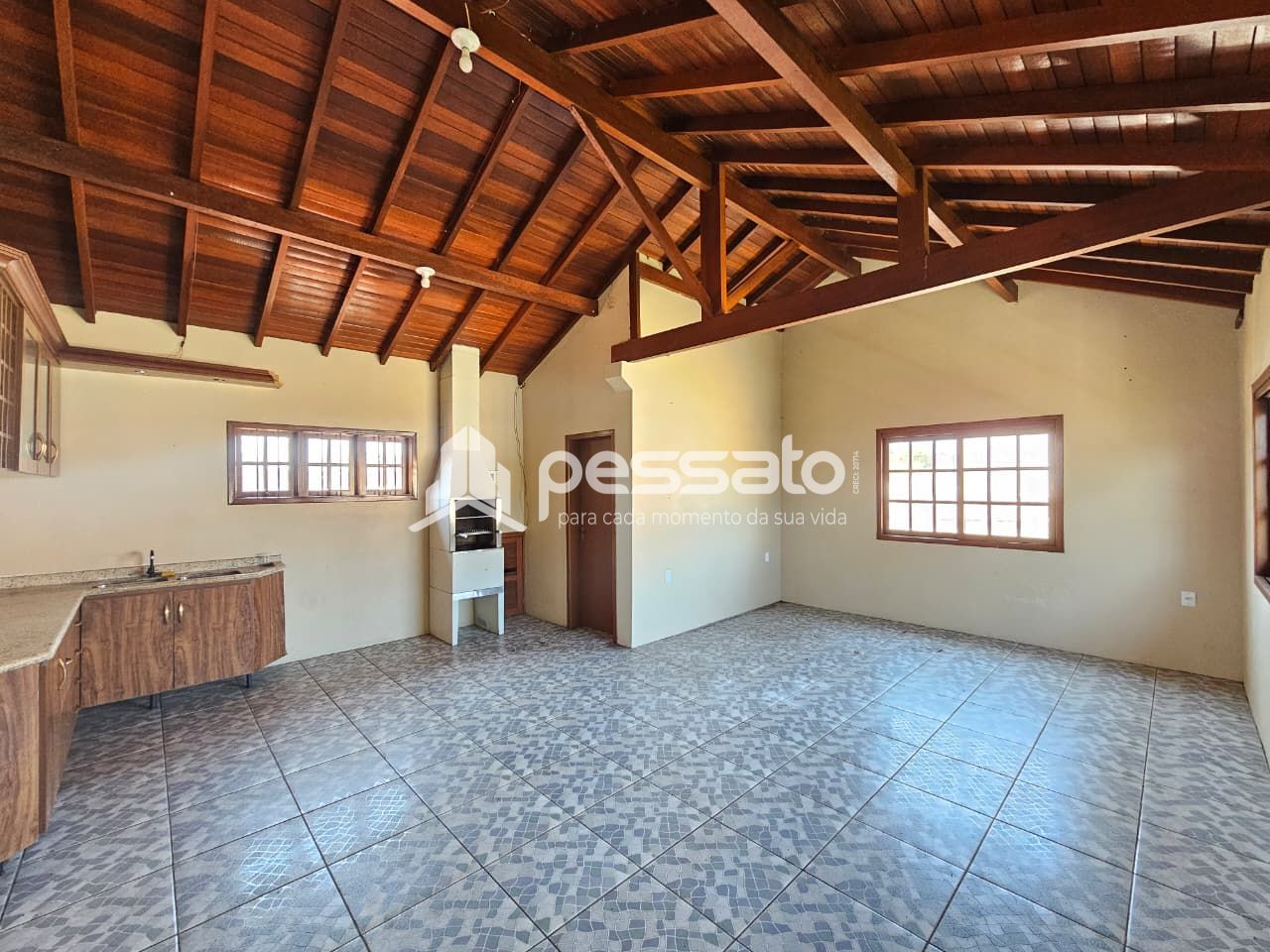 O imóvel conta com 150m² de área construída, distribuídos em 4 dormitórios, sendo uma suíte, sala de estar e jantar, cozinha, área gourmet com churrasqueira e banheiro. Possui iluminação instalada e piso cerâmico.