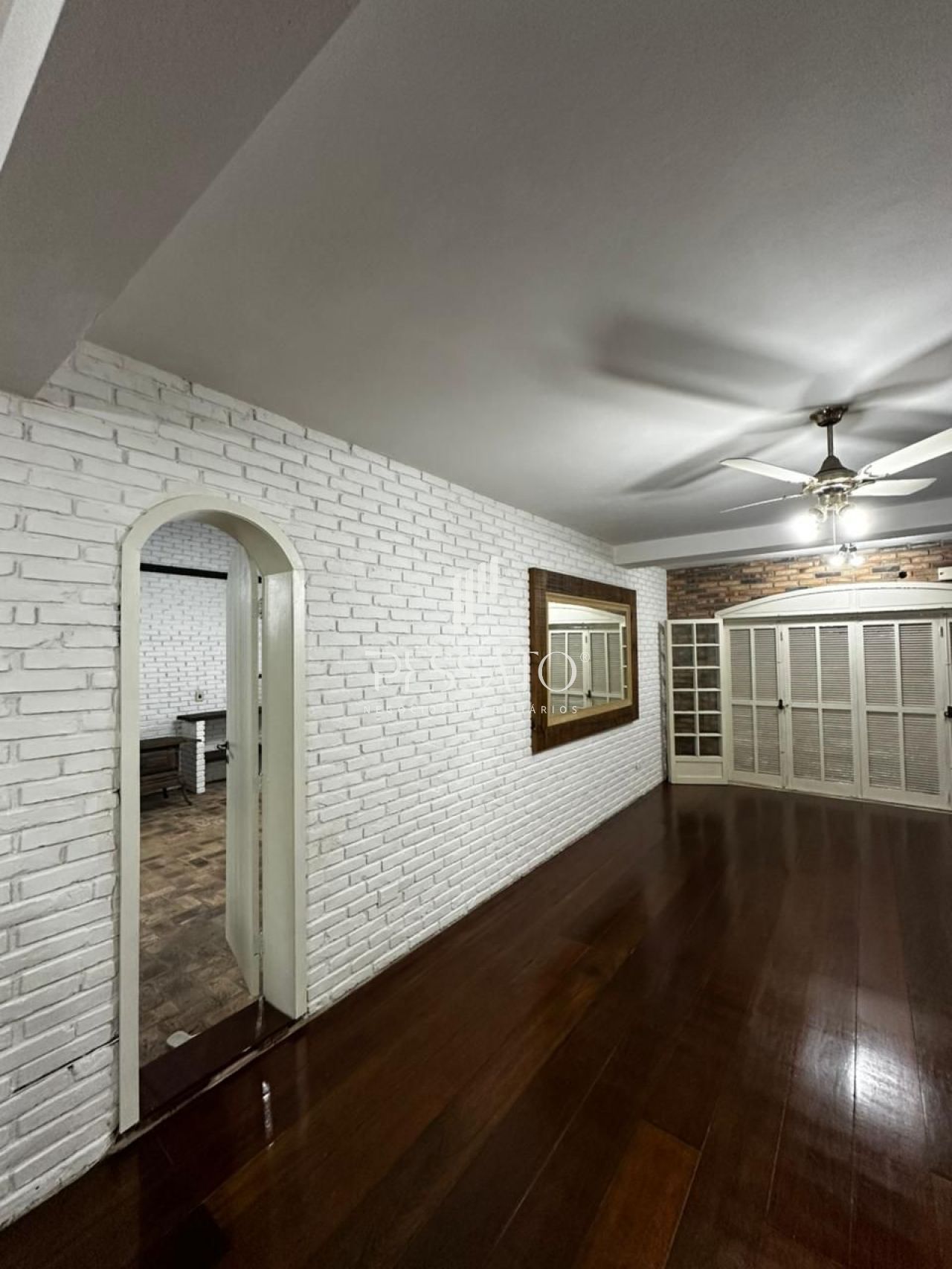 A casa conta com 4 dormitórios, sendo 1 suíte com sacada, proporcionando privacidade e bem-estar. A área social é composta por um living espaçoso, integrando sala de estar e jantar, com piso em madeira, agregando elegância ao ambiente.