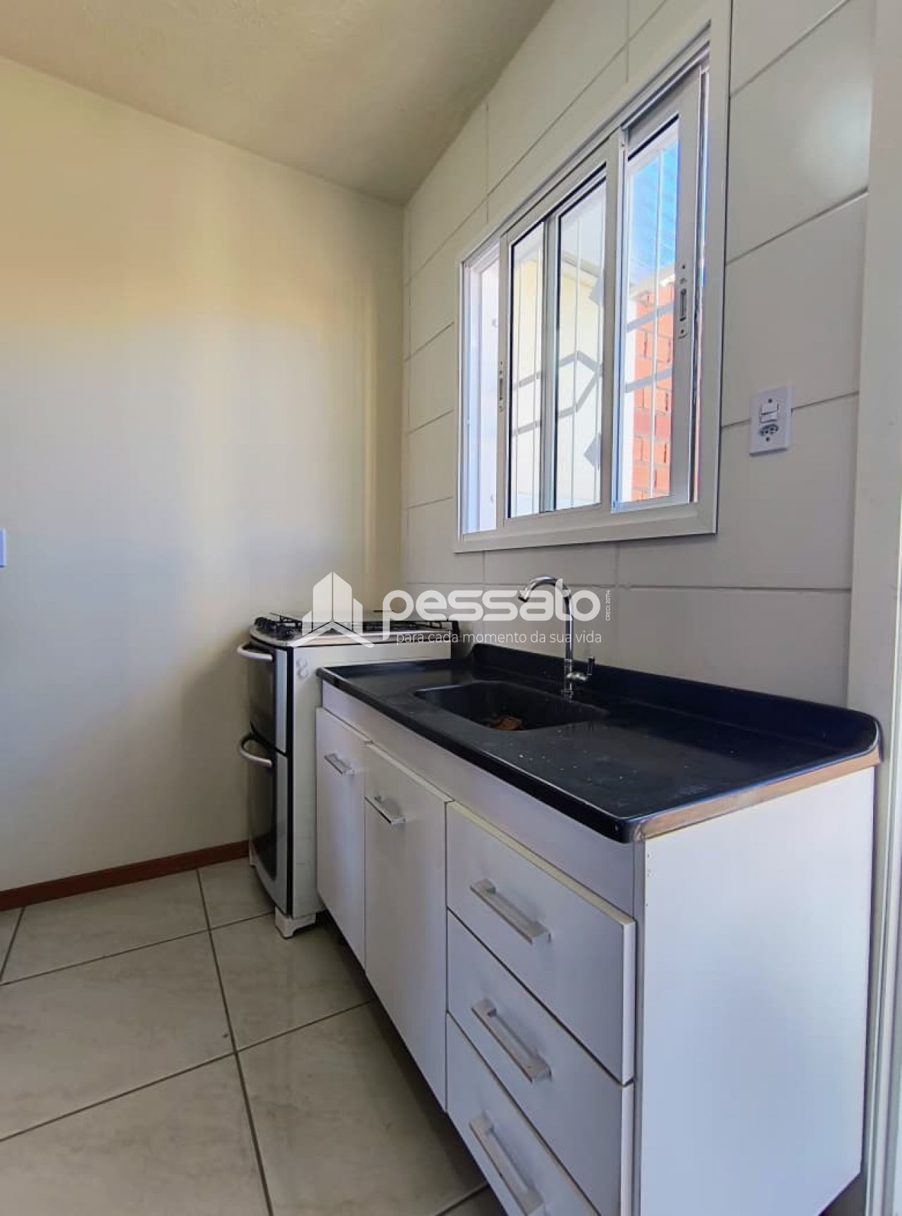 Ela conta com 1 dormitório, sala, cozinha, área de serviço, piso cerâmico e iluminação. Além disso, há 1 vaga descoberta para estacionamento.