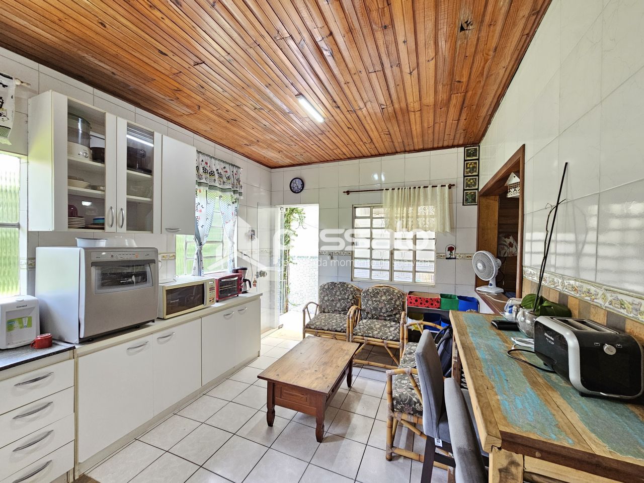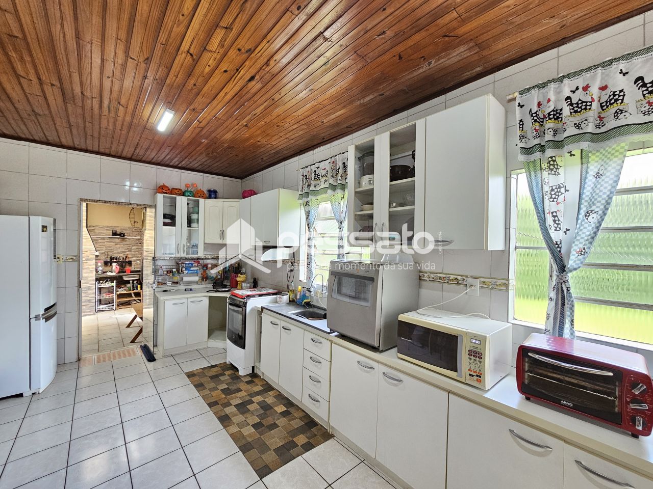 O imóvel conta com 03 dormitórios, sendo 01 suíte, sala de estar e jantar, área de serviço, cozinha, pátio, 03 banheiros e vaga para 03 carros, sendo 02 vagas cobertas e 01 vaga descoberta.