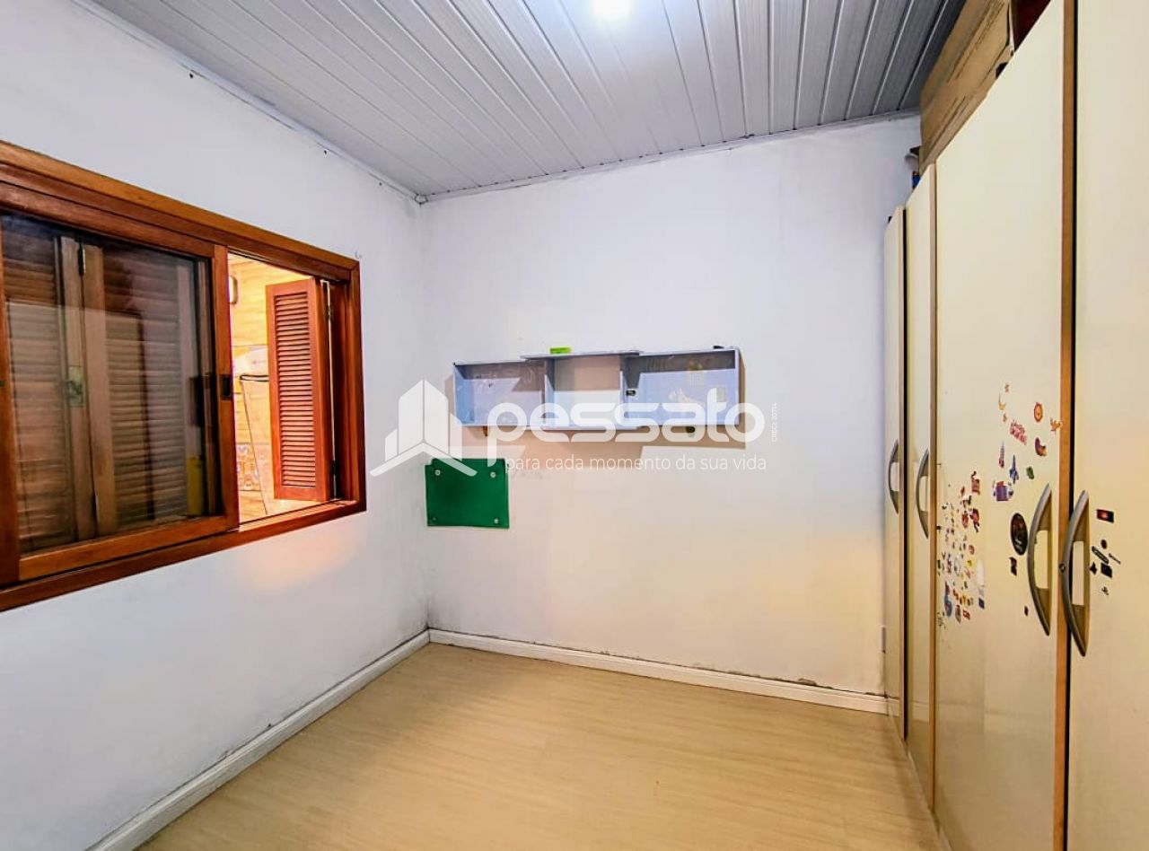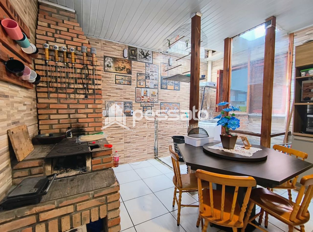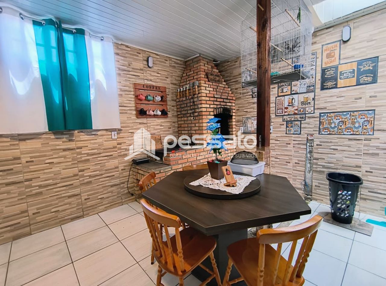 Com 90m², a casa conta com 2 dormitórios com roupeiro, sala de estar e jantar, cozinha com móveis planejados, fogão a lenha, banheiro com box de vidro temperado, 2 vagas de estacionamento cobertas, piso cerâmico e iluminação.