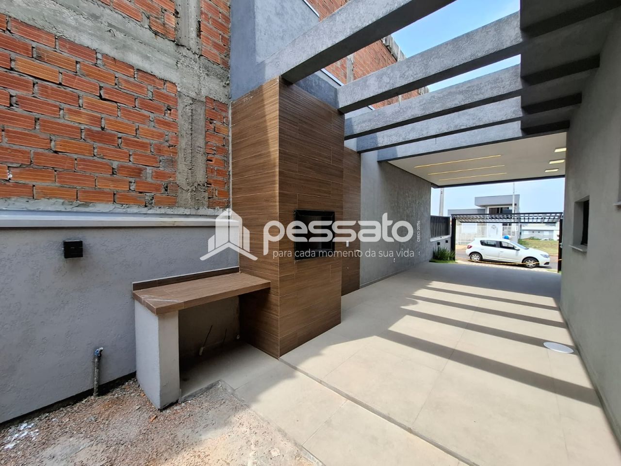 O imóvel conta com 03 dormitórios, sendo 01 suíte, sala de estar e jantar, área de serviços, cozinha, banheiro social e vaga para 03 carros, sendo 2 cobertas.