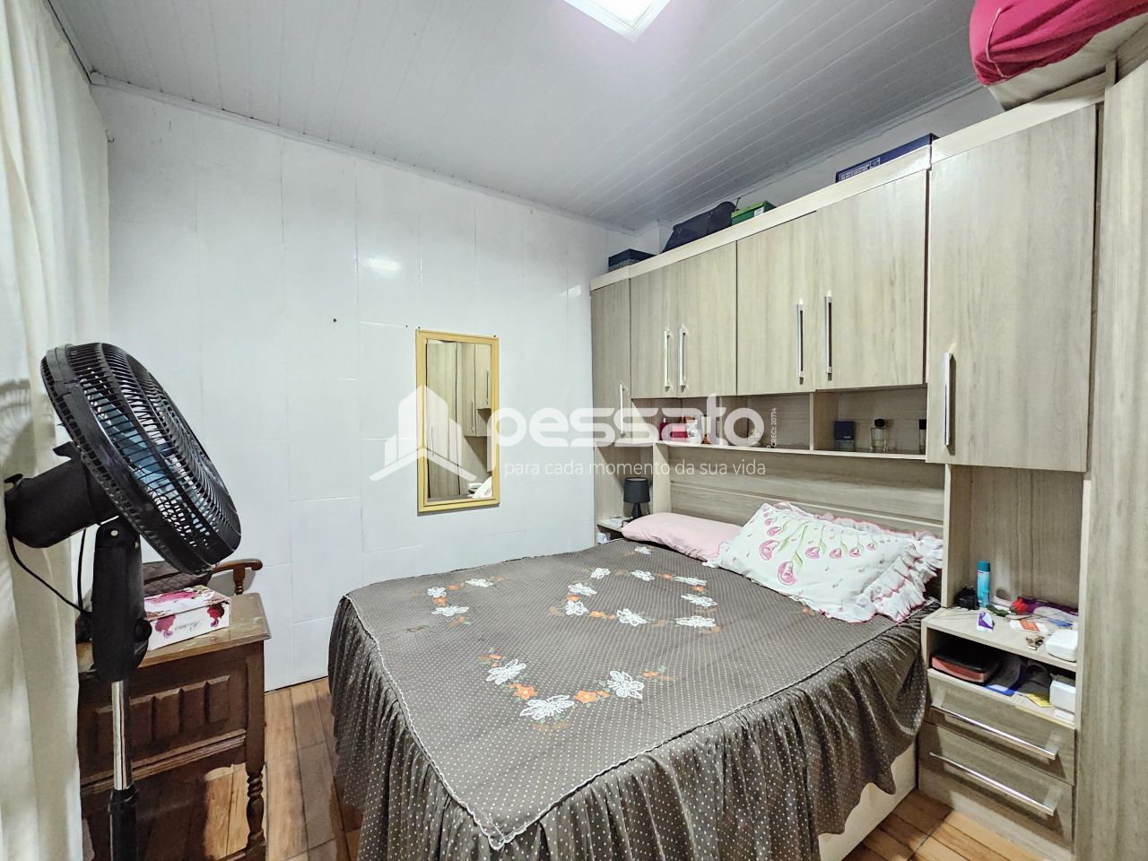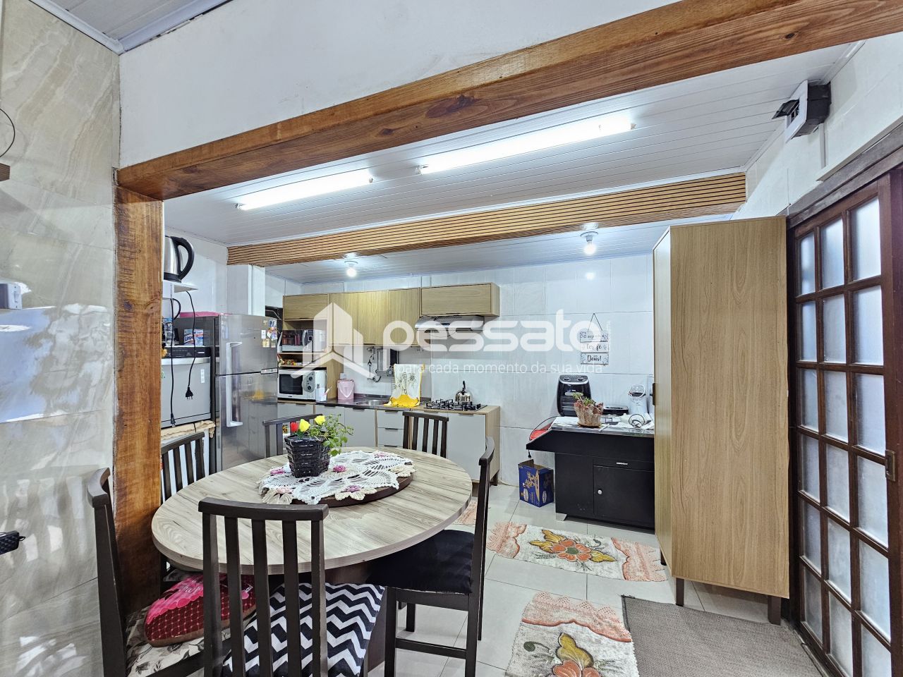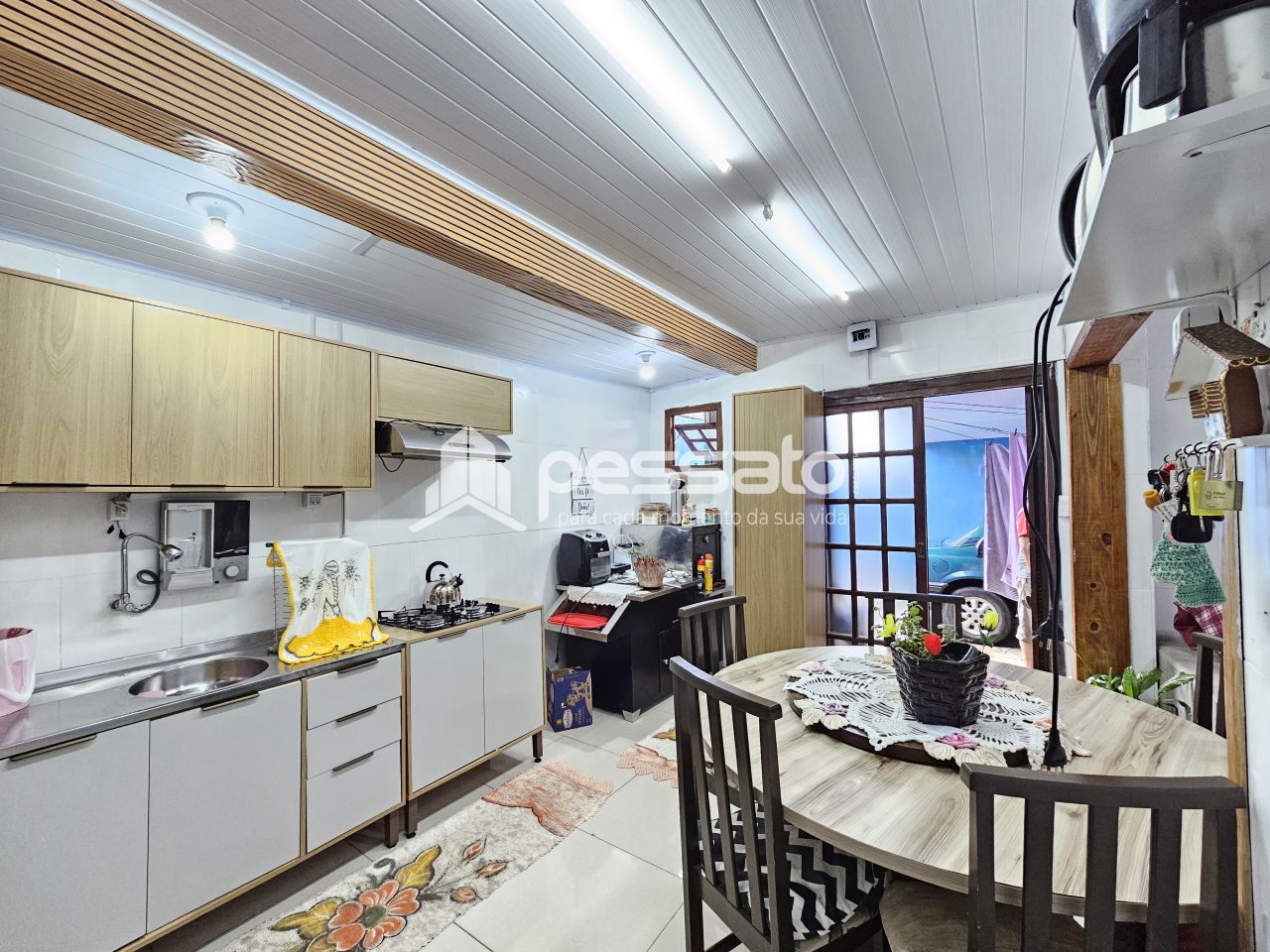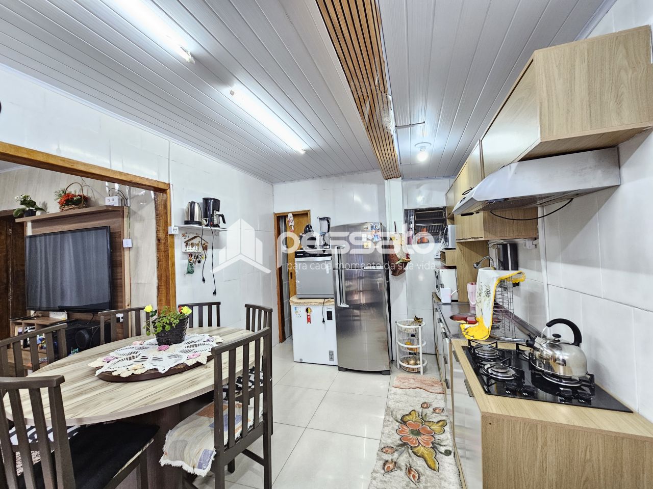 O imóvel conta com 01 dormitório, sala de estar e cozinha integradas, área de serviço, churrasqueira, 01 banheiro e vaga para 01 carro coberta.