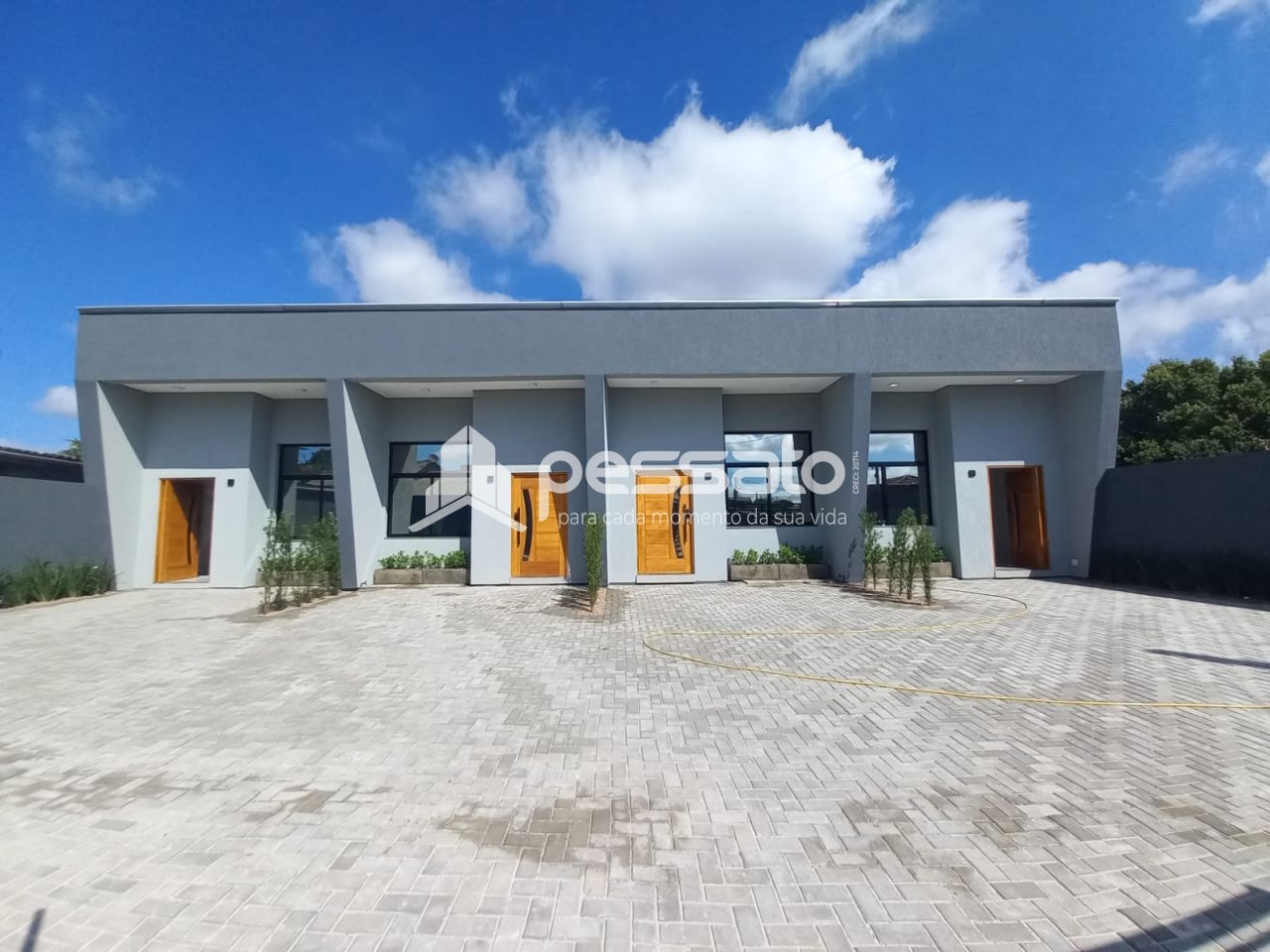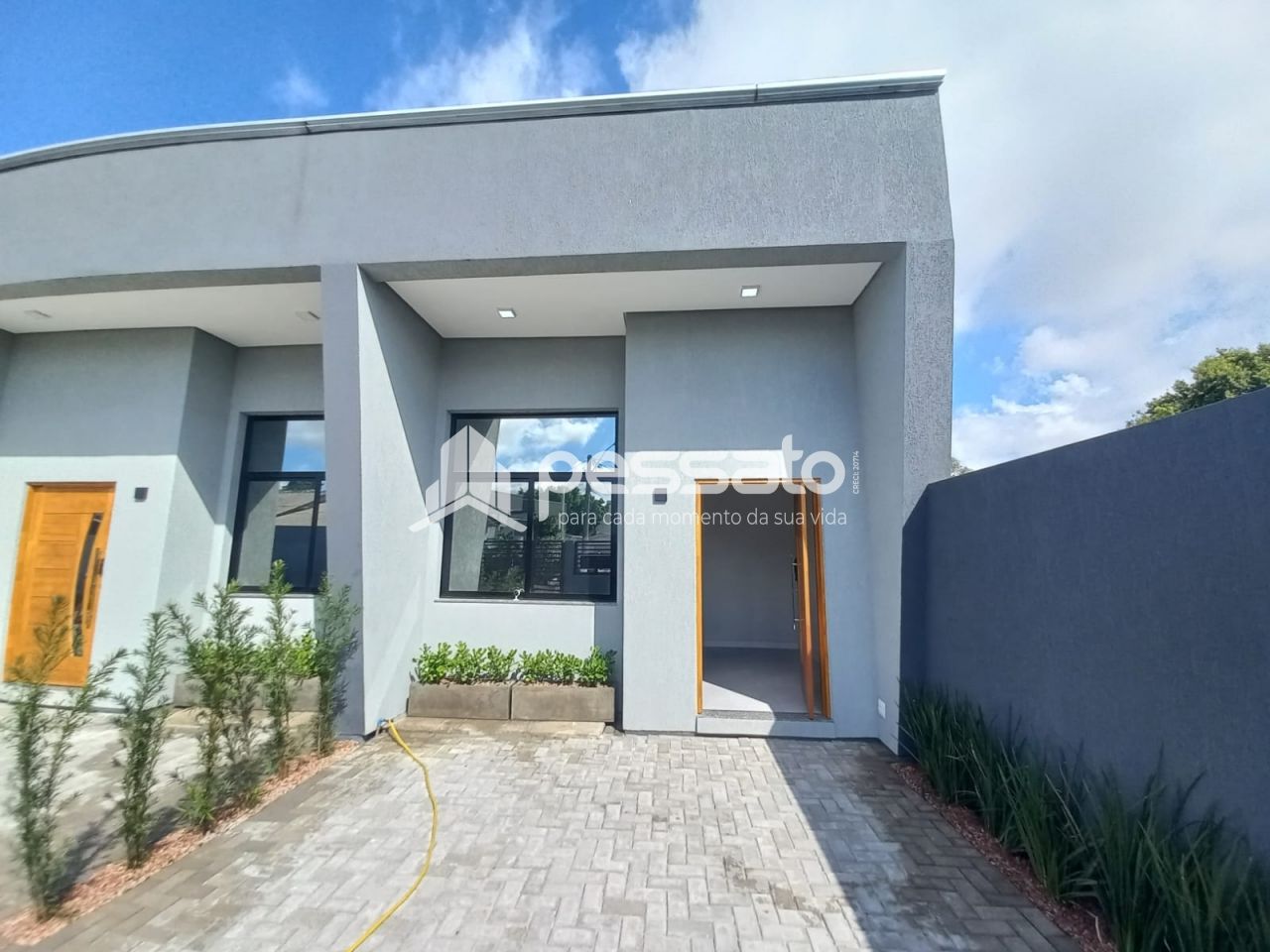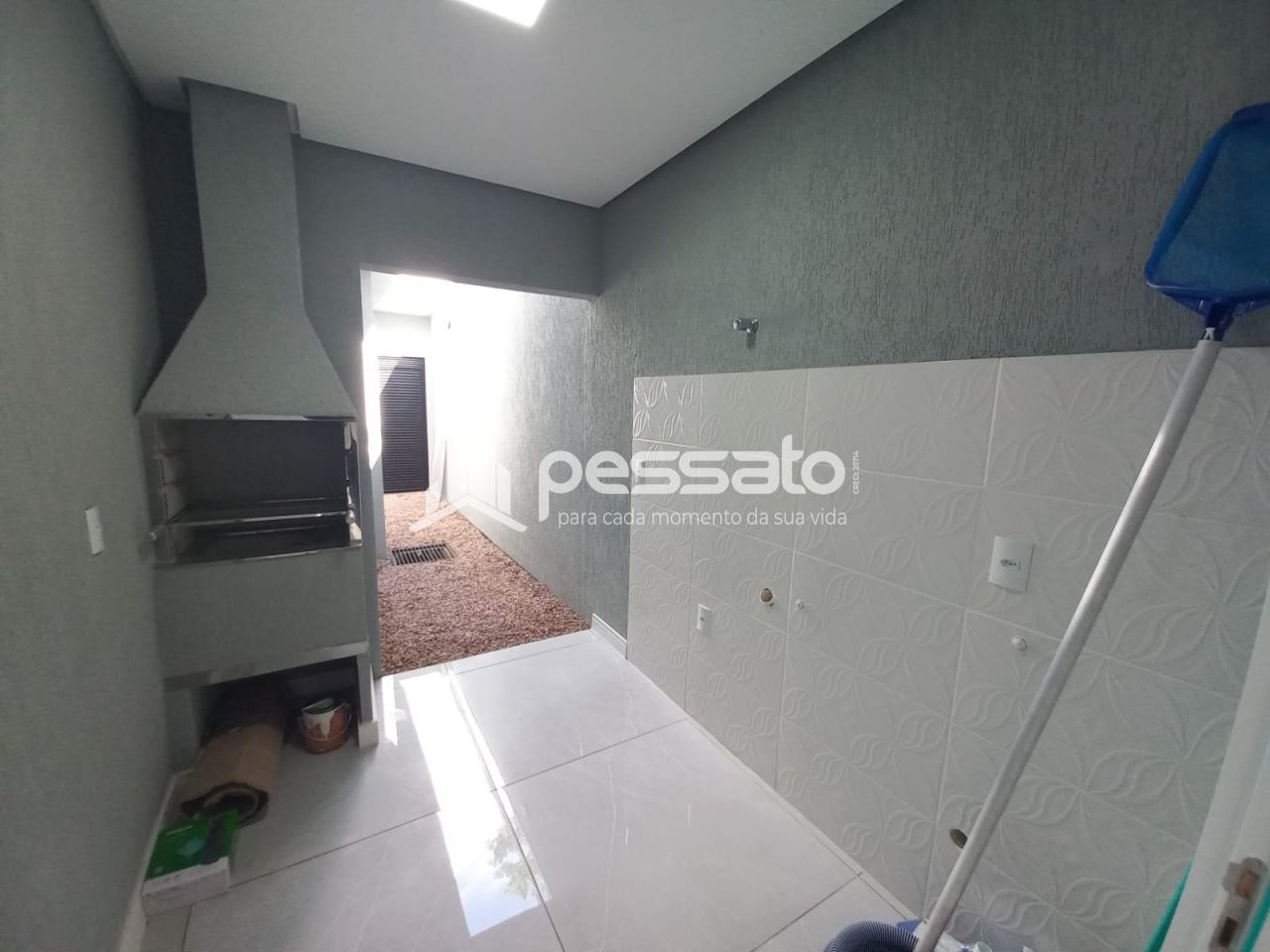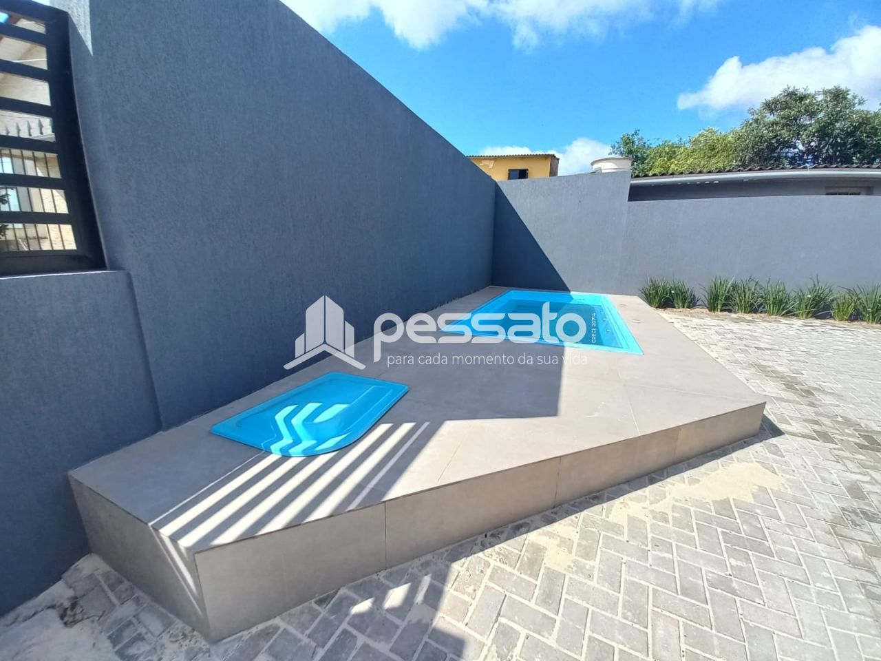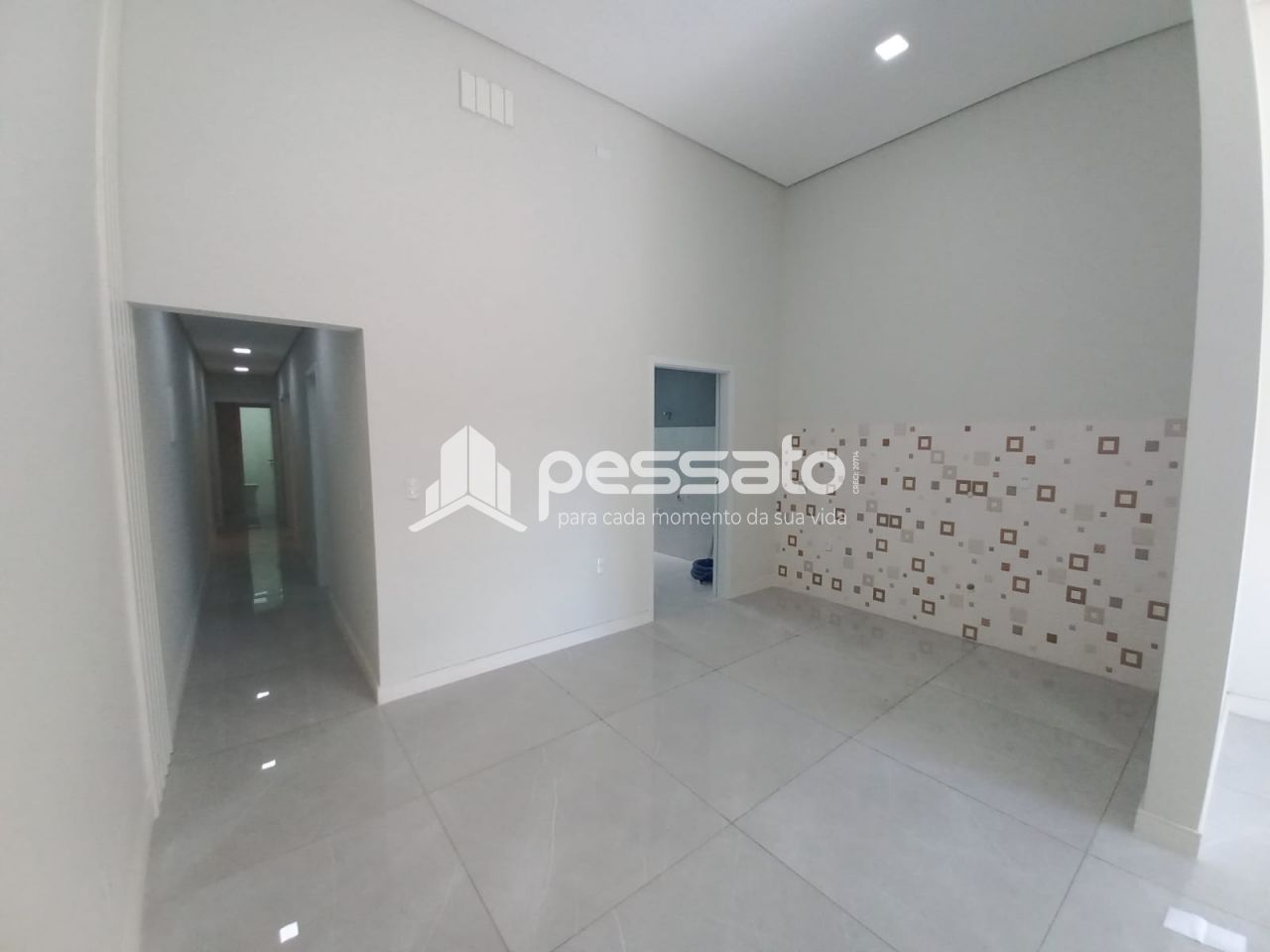 O imóvel conta com 03 dormitórios, sendo 01 suíte, sala de estar e jantar, área de serviços, banheiro social e vaga para 02 carros descoberta e piscina.