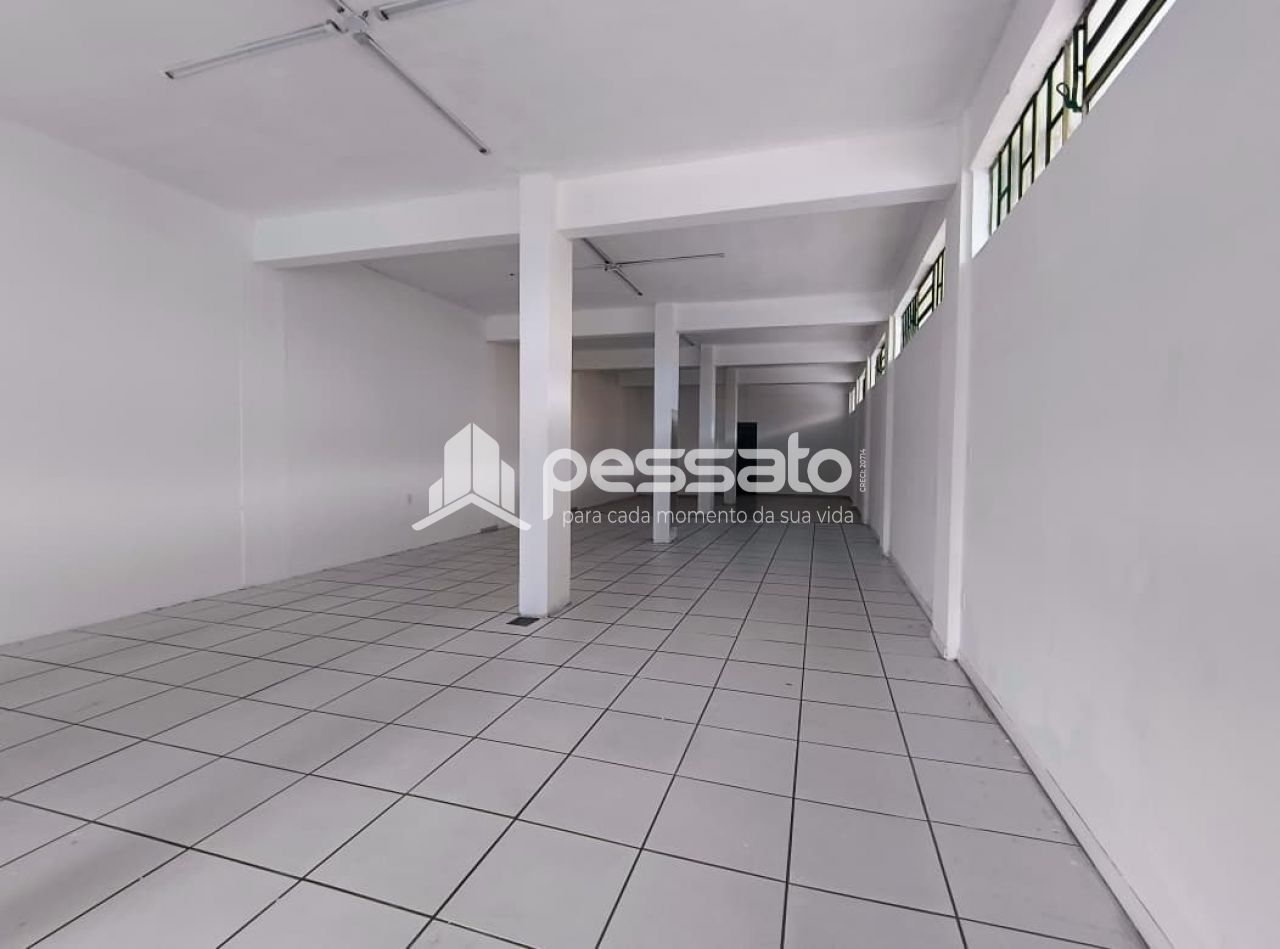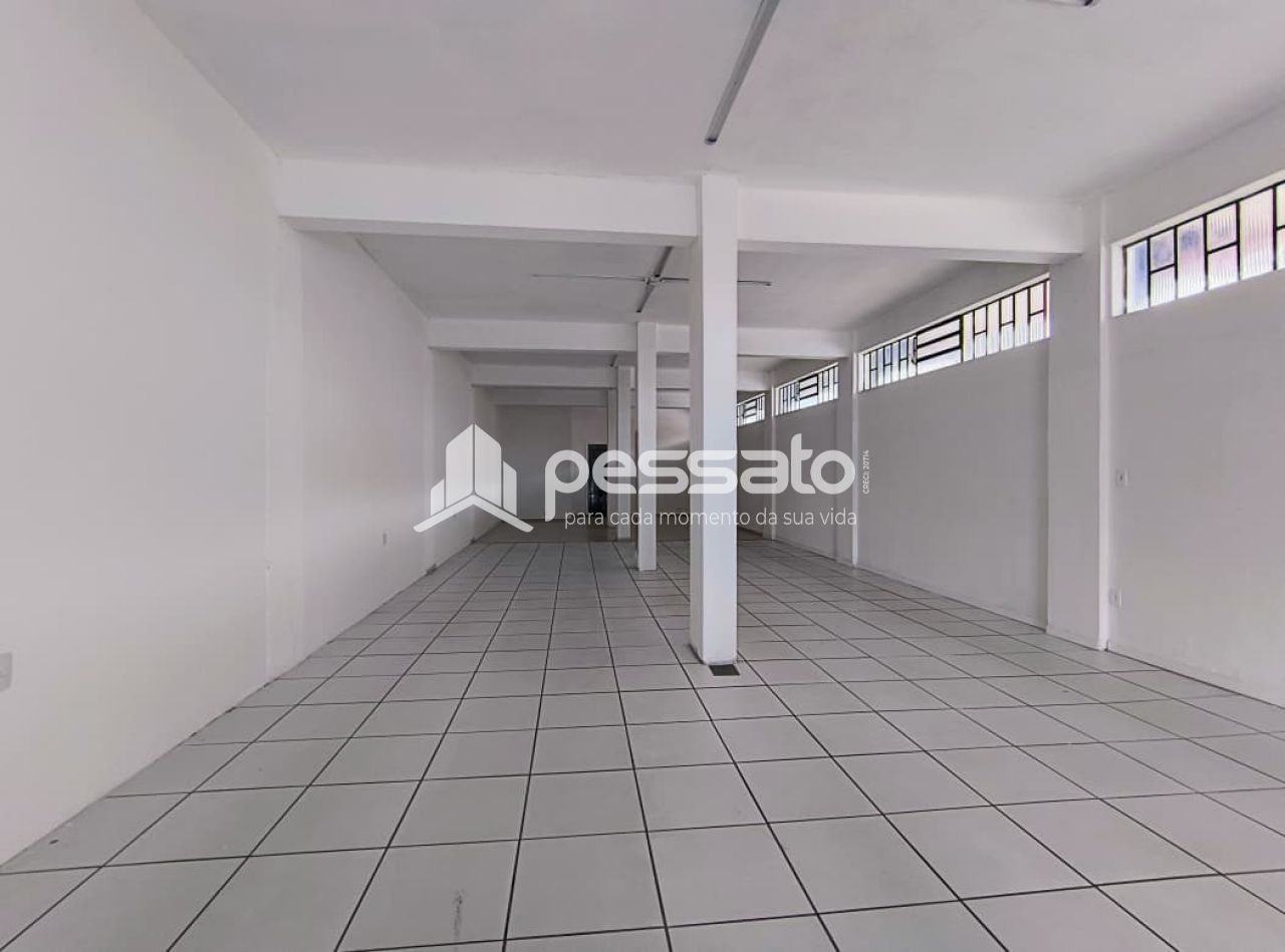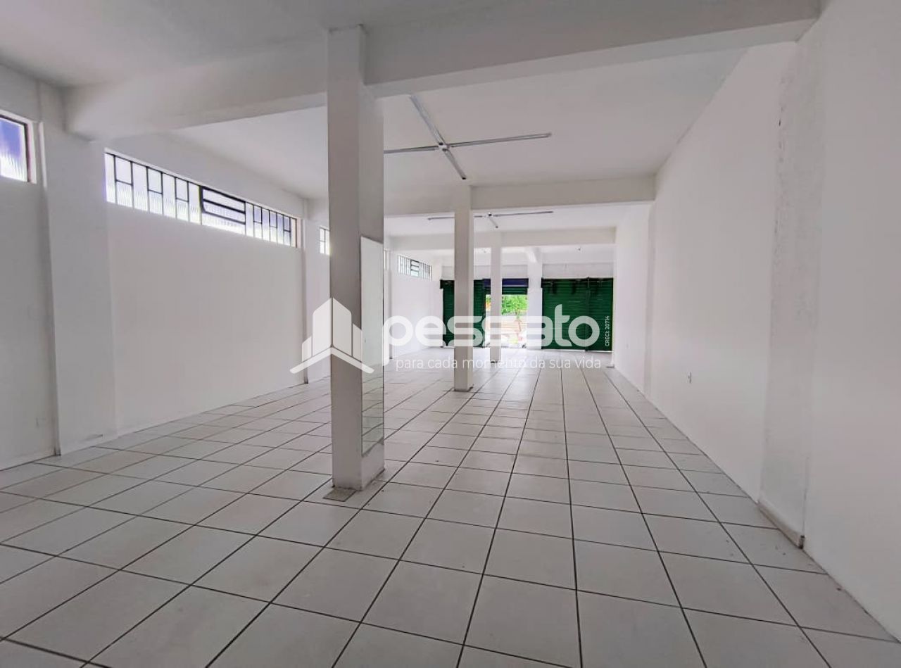 Com 140 m², dispõe de 2 banheiros, sendo um adaptado para pessoas com deficiência, iluminação instalada, piso cerâmico e portas metálicas.