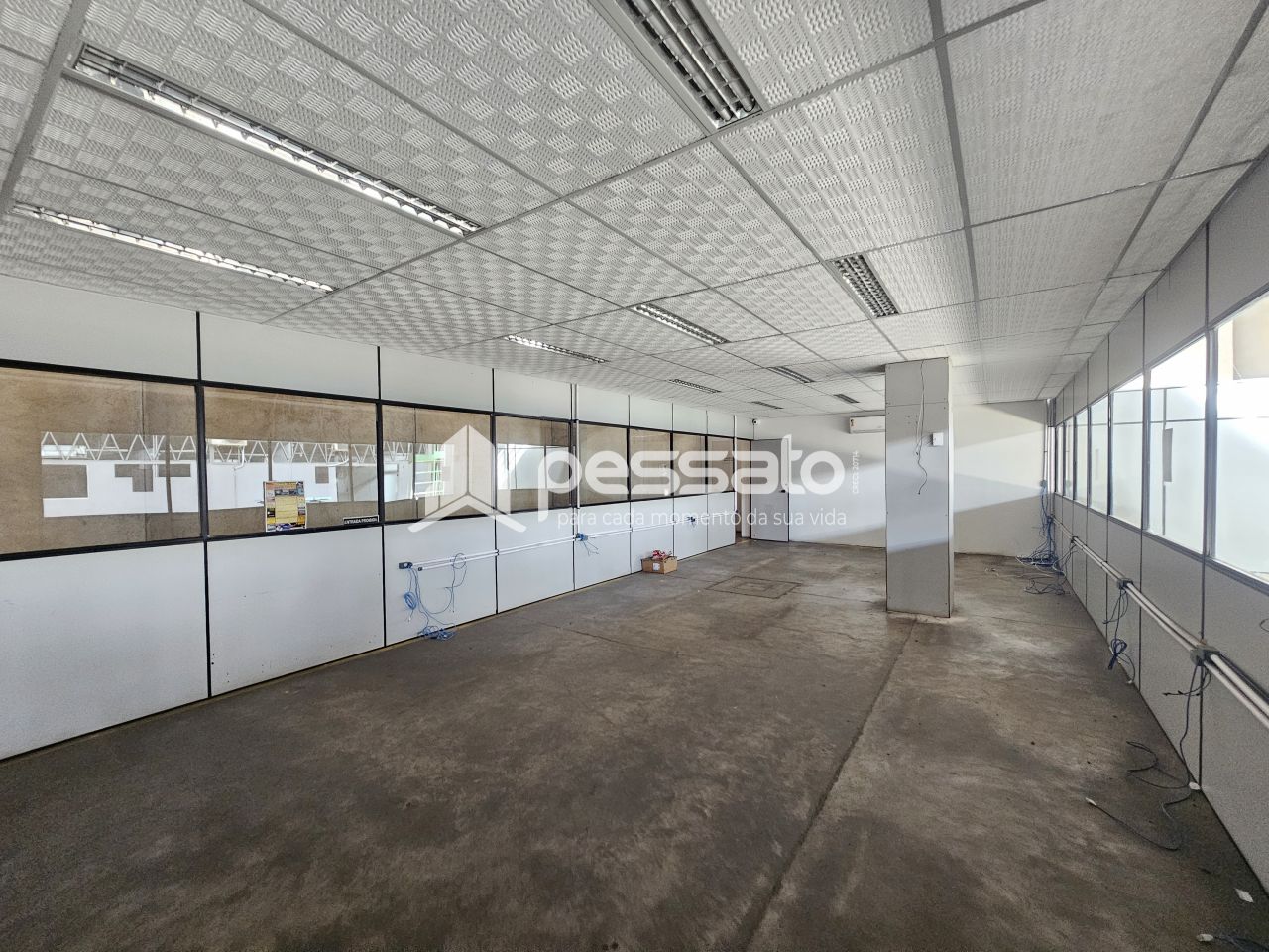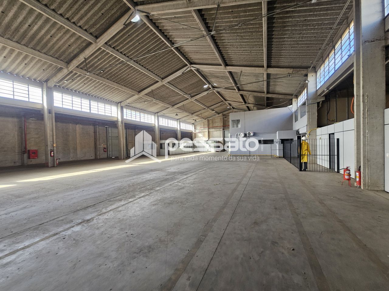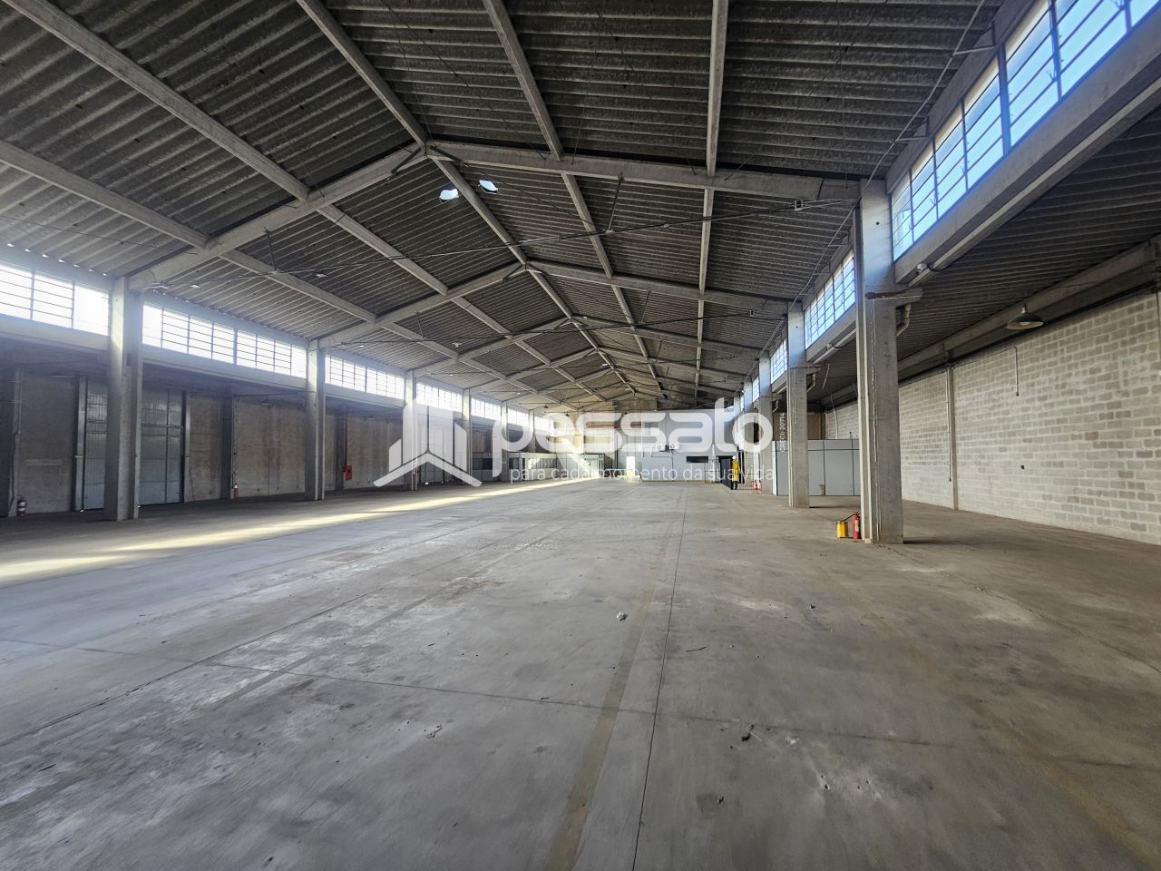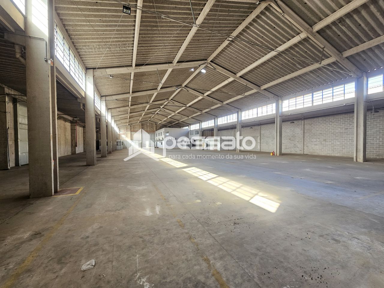 O imóvel conta com 1800 m² de área construída, pé direito de 9 m², 02 docas, mezanino, escritório com salas com ar condicionado, e 04 banheiros.