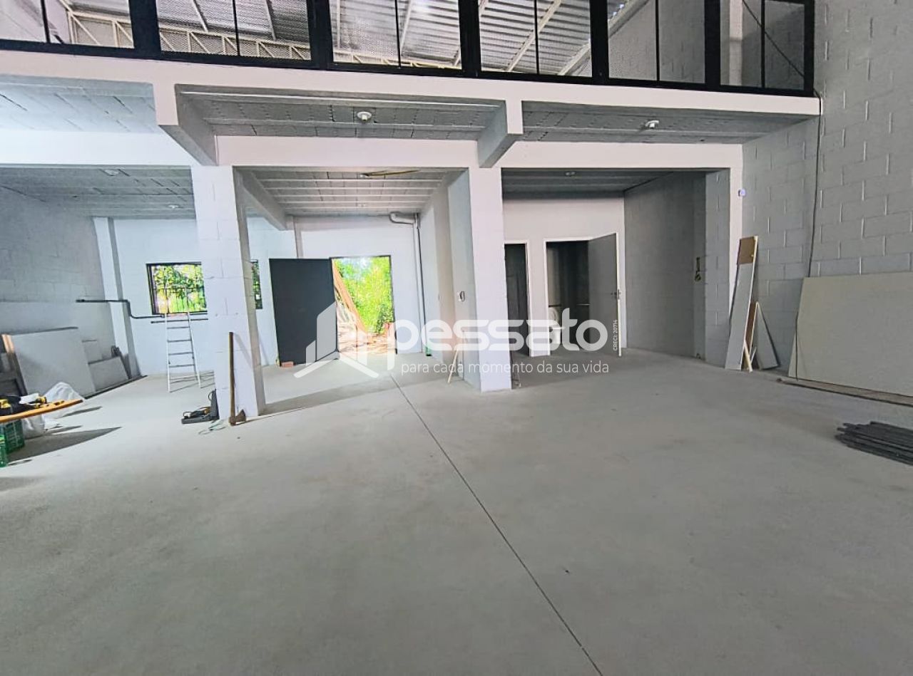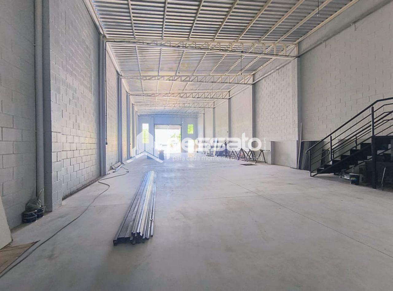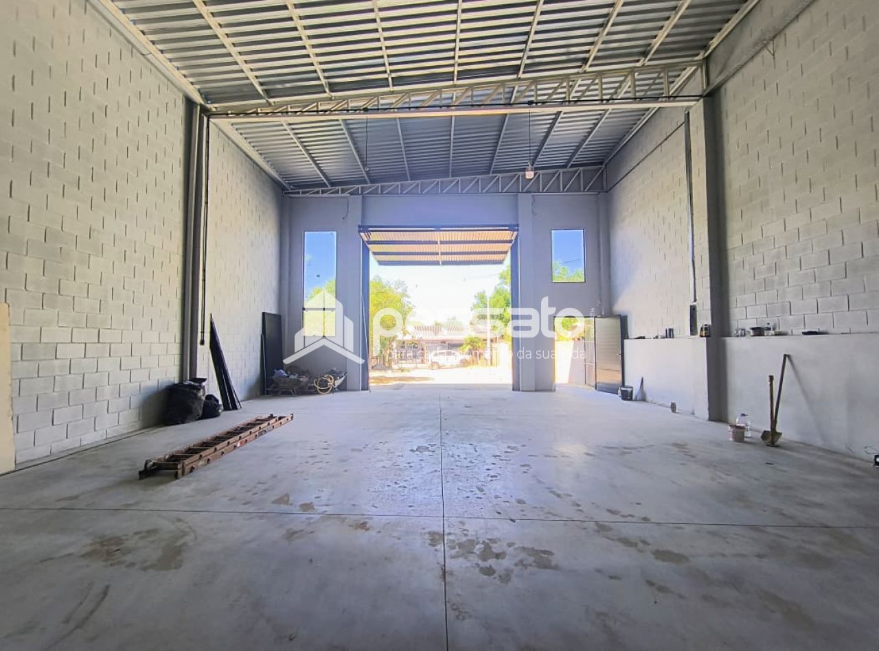 Com 420m² de área construída, esse pavilhão conta com pé direito de 5.80m, banheiro para cadeirante, cozinha, mezanino, piso polido e rede elétrica trifásico.