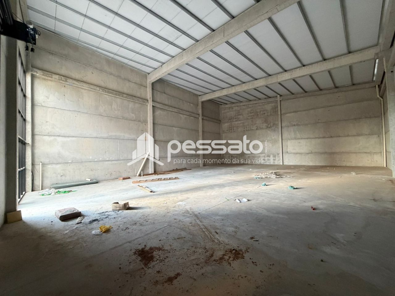 Com 300m² de área construída; 2 banheiros; portas de metal automatizadas; piso polido; espaço versátil, ideal para diversos tipos de atividades.