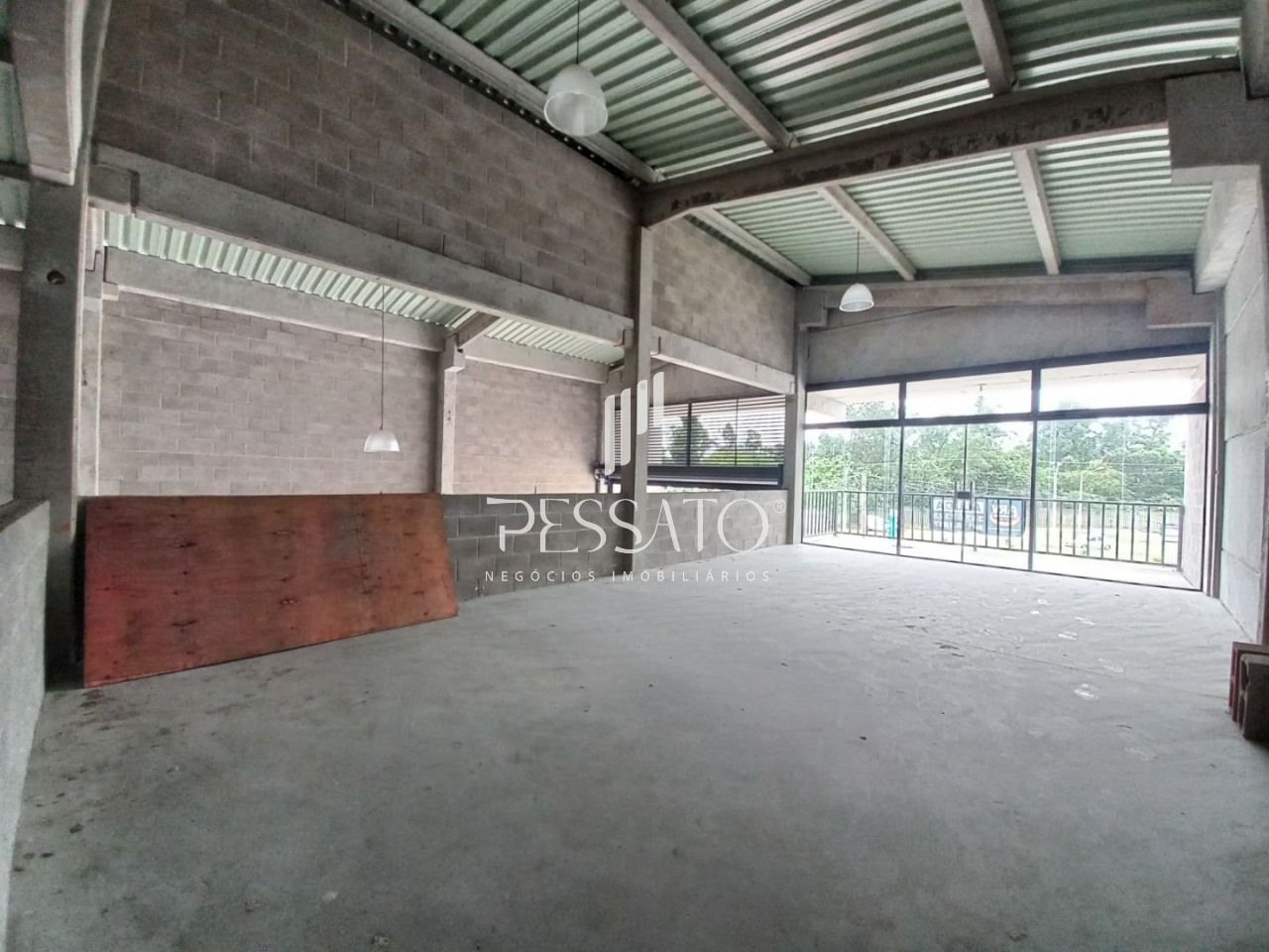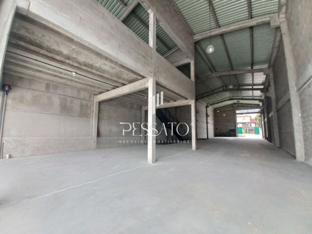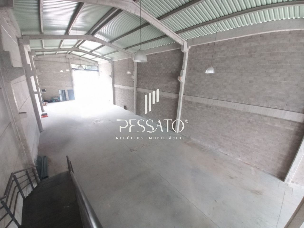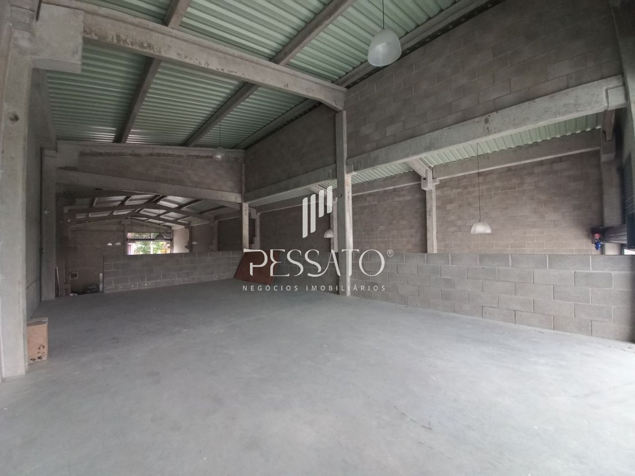 O imóvel conta com 500m² de área construída, pé direito de 7 metros, piso de concreto polido com 15 cm de espessura, portas automáticas com vão livres de 5.00m de altura, e excelente localização.