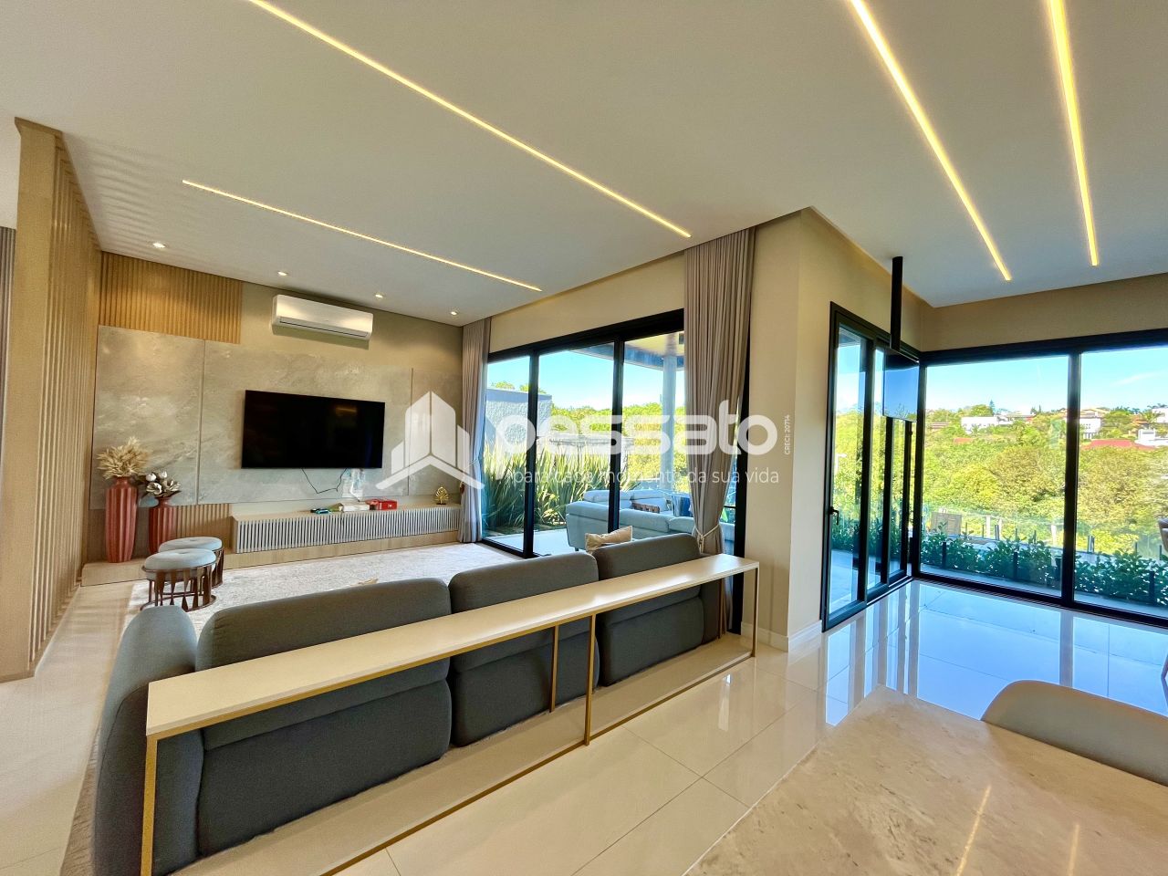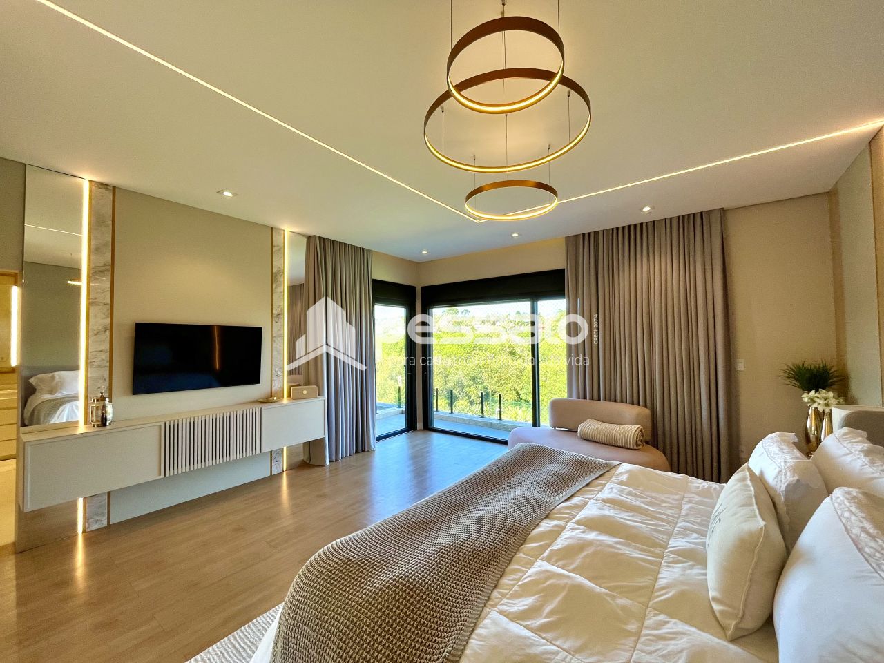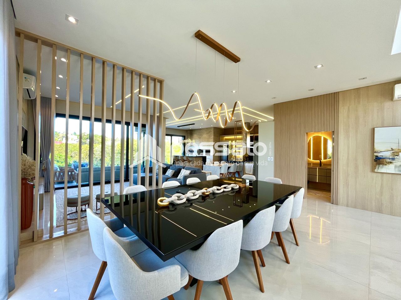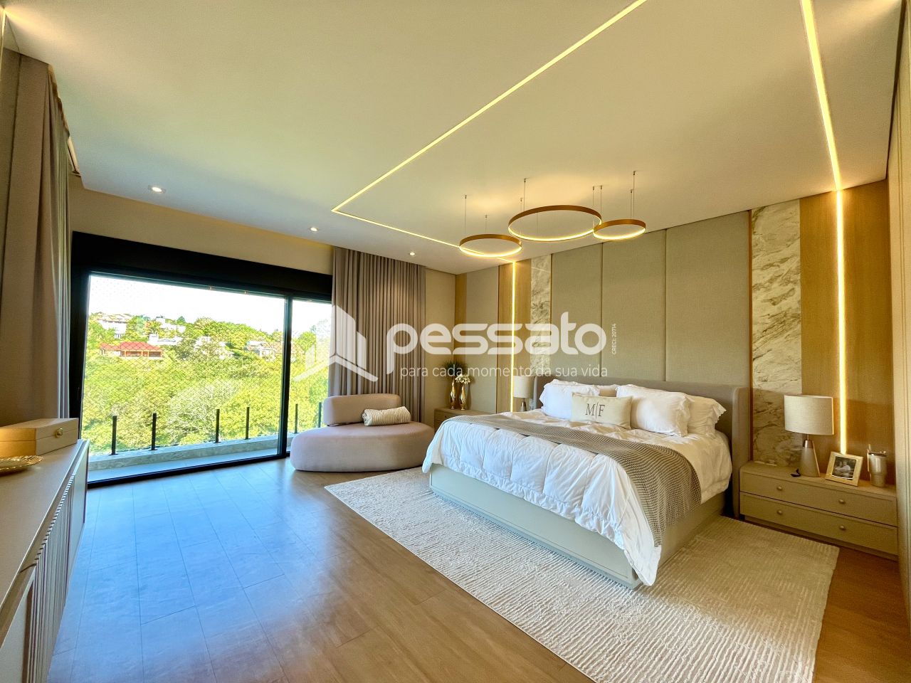 O imóvel conta com 3 suítes, sendo uma master, 2 banheiros, quarto principal com closet e sacada. Você encontra garagem para 4 carros, com carregador para veículos elétricos. A área externa tens mais de 60 árvores frutíferas, piscina e uma quadra de grama sintética no quintal fazem você aproveitar com privacidade, e tudo isso com vista para o espaço de preservação natural do condomínio. É magnífico, atrela tecnologia, exclusividade, conforto e uma beleza extrema em cada detalhe, tudo pensado para elevar seu nível de vida e manter você conectado com a natureza e seus lazeres ao lado de toda sua família!