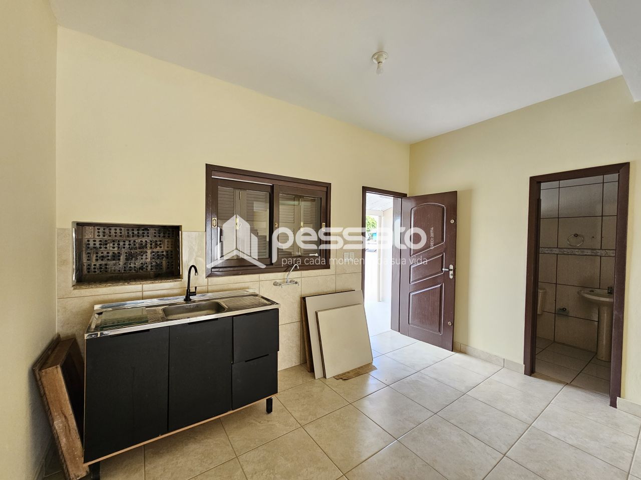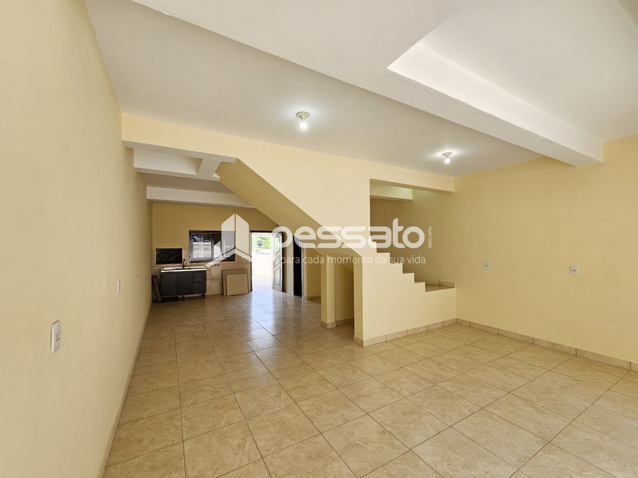 O imóvel conta com 03 dormitórios, sala de estar e cozinha integradas, área de serviço, churrasqueira, 03 banheiros e vaga para 03 carros, sendo 02 vagas cobertas e 01 vaga descoberta.